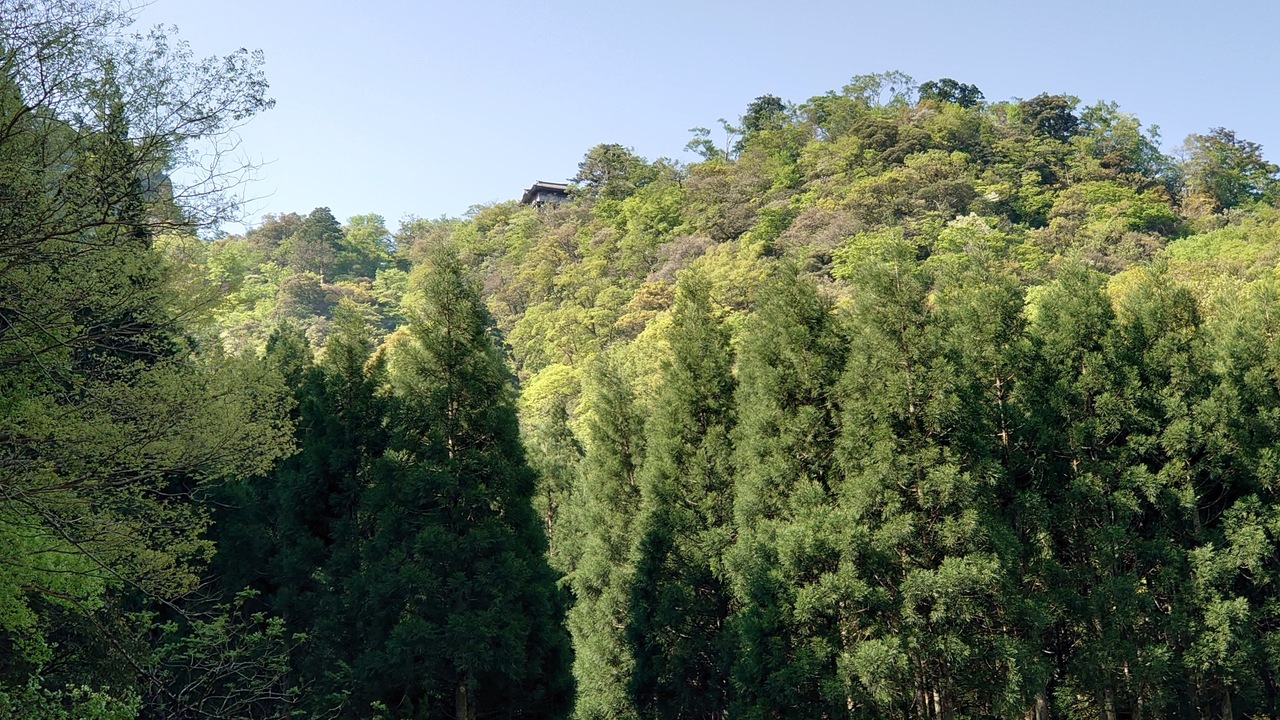 断崖絶壁に建つお寺で日本一危険な国宝とも言われているそうです。参拝できる気がしなかったので通りすがりに眺められる場所があったので行ってみました。下から見上げます。肉眼ではすごく小さくしか見えませんでした。