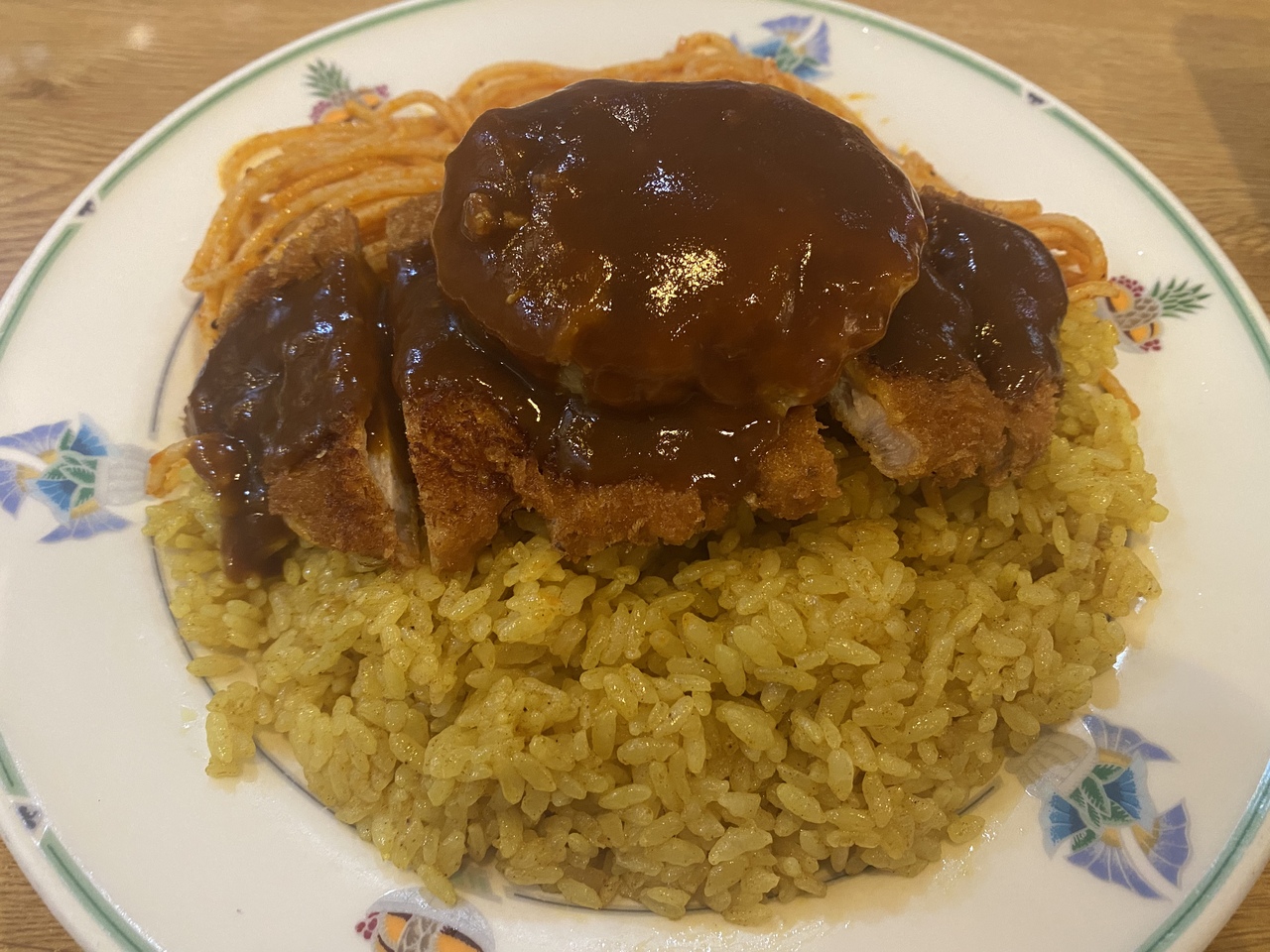 長崎駅から市電で南下したアーケードにある老舗のレストランです。長崎名物のトルコライスを頂きました。見た目のインパクトがあり、子供が好きな物を詰め合わせたような一皿です。ご飯とパスタが入っておりこの料理だけで満腹になりました。