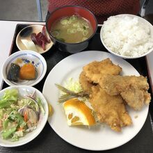 ランチの定食の白米を数量限定でさざえご飯にできますよ。
