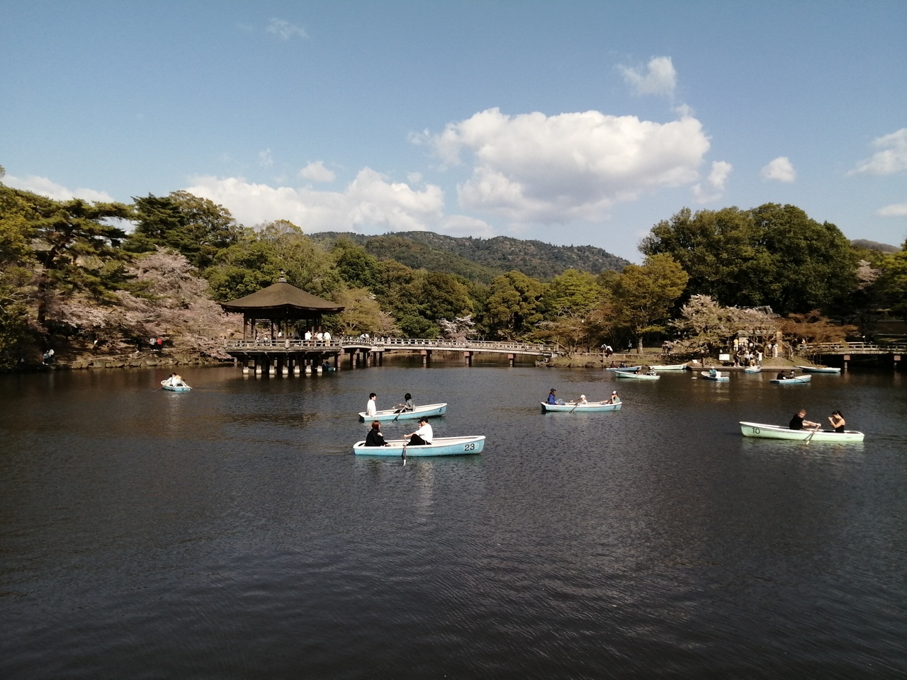 奈良公園の南側、浅茅ヶ原園地の一画にある池です。趣きのある浮見堂があることでも知られています。貸ボート屋もあり、結構な方々がボート漕いでました。さすがに私は自重しましたが、“連れ”がいれば乗ってたかもしれません。いや、本当は乗りたかったです。
