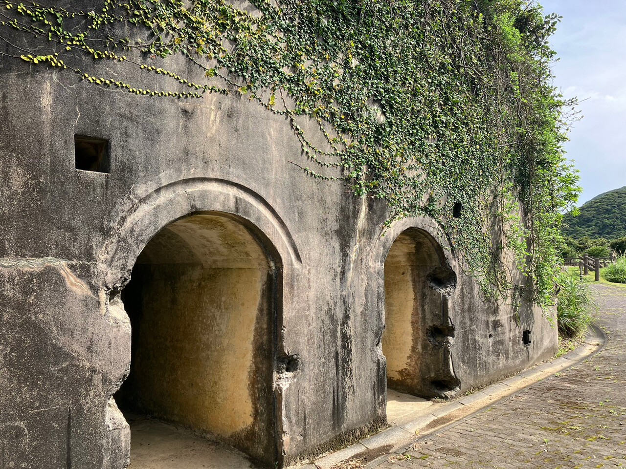 専用の駐車場とお手洗いあり。階段を登って1周すると貯水池や弾薬格納庫、防備衛所がある。弾薬格納庫と防備衛所は入口にロープが張られてて中には入れないのが残念。高台の開けた展望台スペースからの景色もよかった。