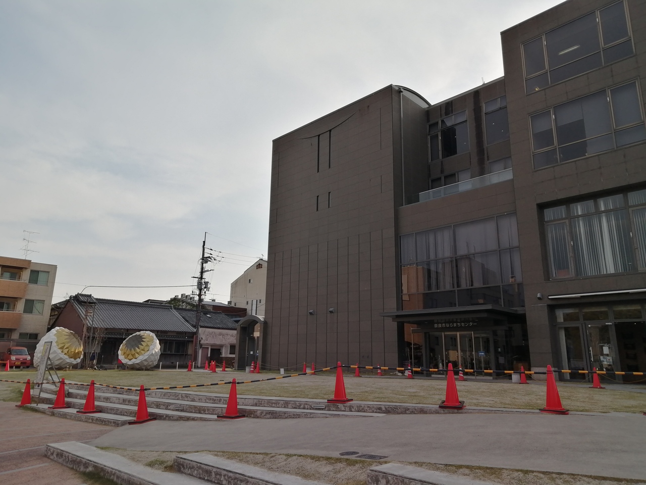 ならまち東側の一角にある地域コミュニティーセンターです。多目的ホールや会議室を利用しない観光客には縁遠い施設ですが、駐車場(有料)もあるので付近の観光の際には利用できます。また1階にはカフェもあります。