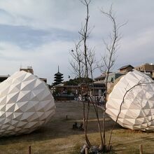建物前にある一見ホラーっぽくもある異質なオブジェですが、外国人アーティストによる“開花”と名付けられた作品。古都ならまちにはミスマッチに思えてならないのですが…。