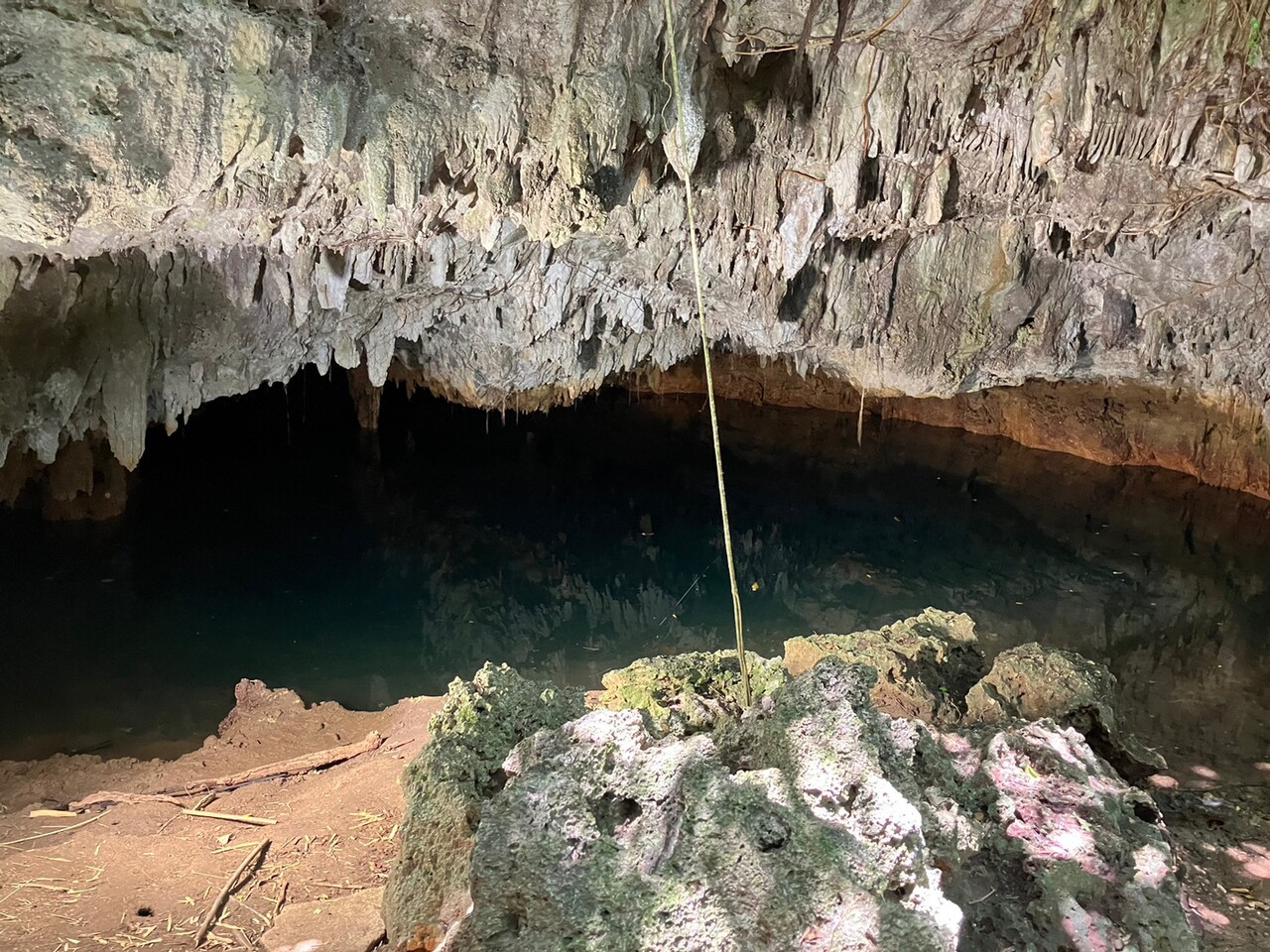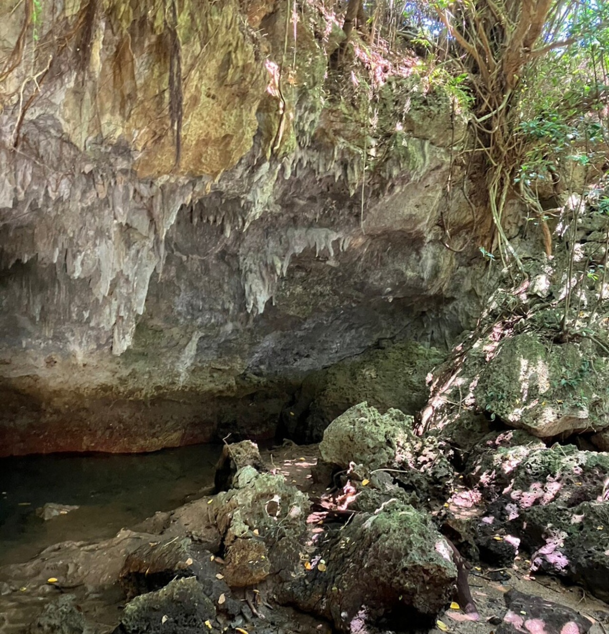 徳之島空港から車で3分程の場所にある「ウンブキ」。駐車場スペースは4~5台。階段を下ると開けた空間に出る。奥の方に橋があり洞窟の近くまで行ける。橋の先は足場は悪いので要注意。洞窟の水は奥の方まで続いているようだが暗くて見えなかった。ガジュマルの木が上の方から根をたらし、雰囲気のある場所だった。