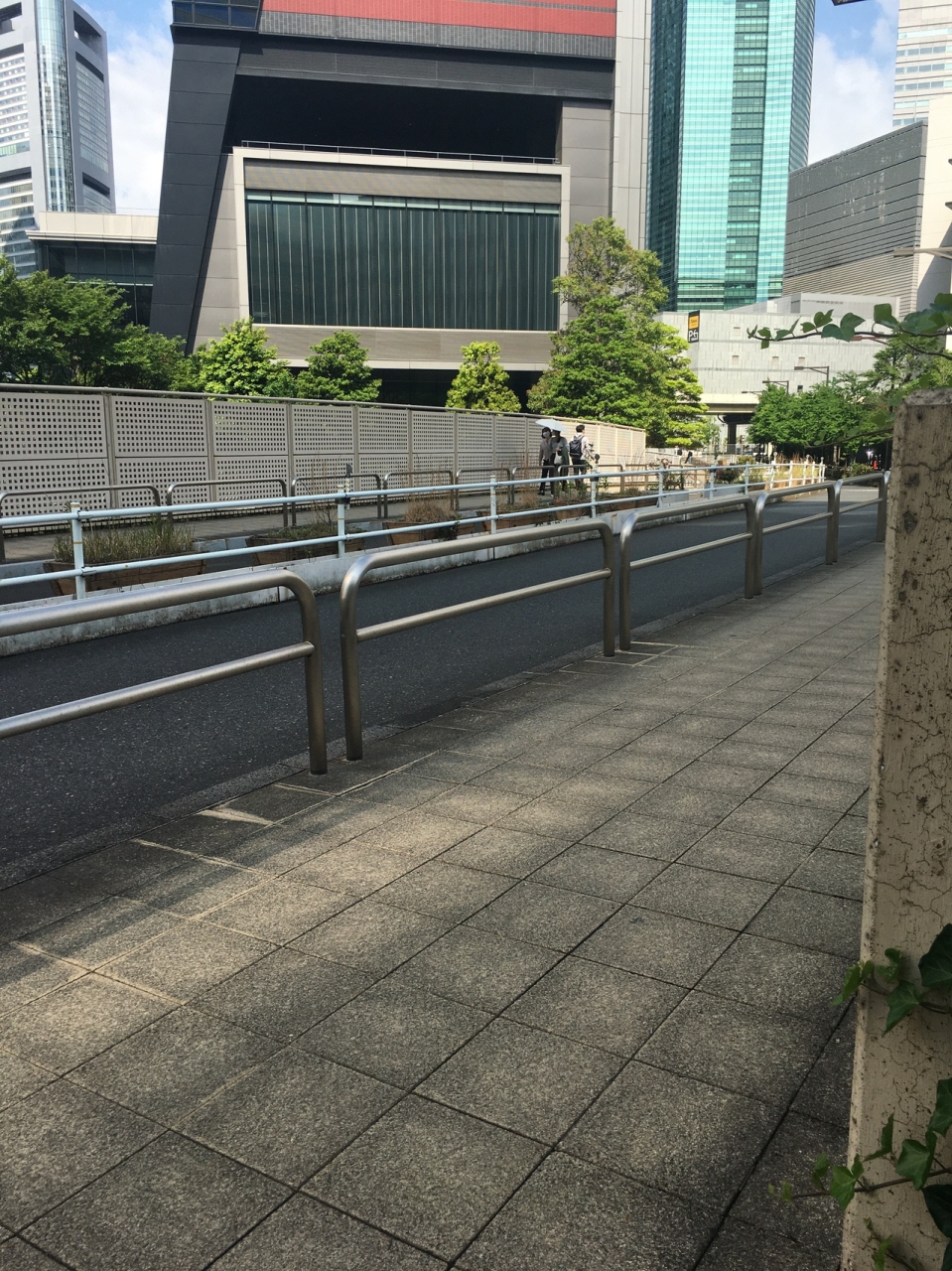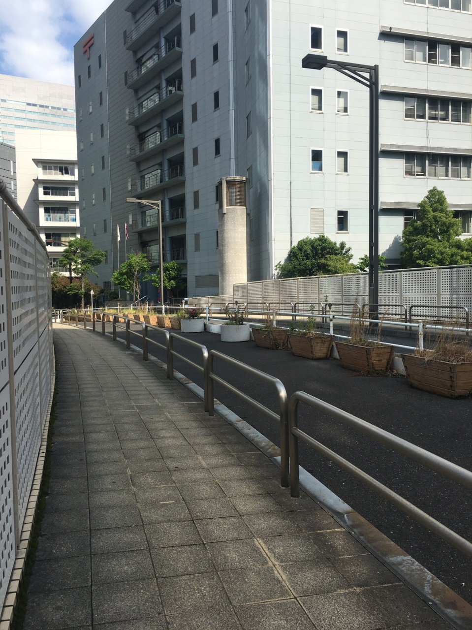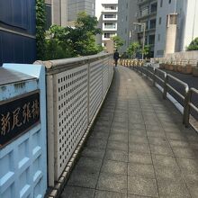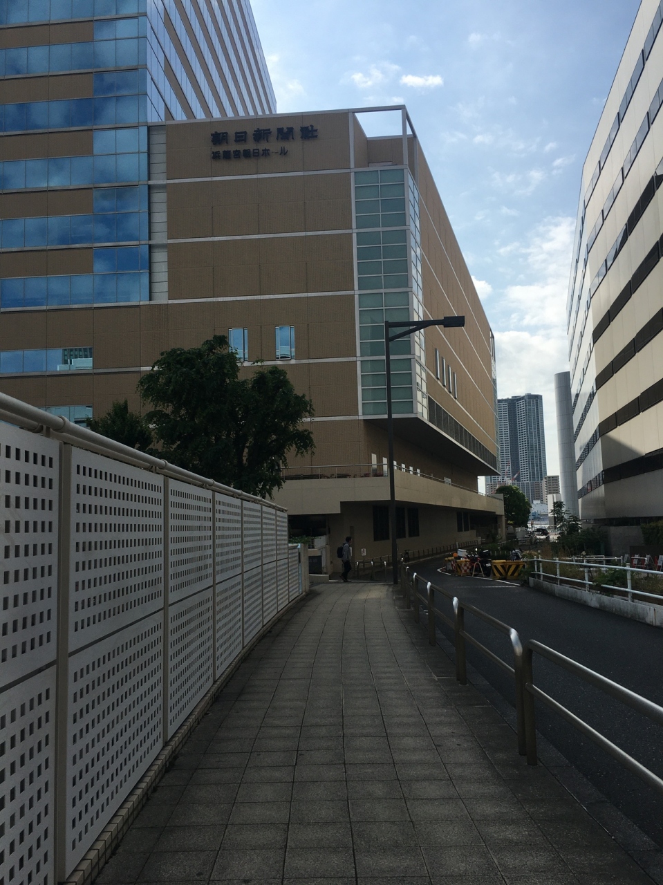 下は首都圏高速道路が走っているので音が気になるかと思ったら橋の左右には防音防止対策がとられていました。橋から僅かに首都圏高速が見えるのみです。橋は普通の良く見かける特徴がない橋で、渡りきると朝日新聞本社ビルの裏手でした。