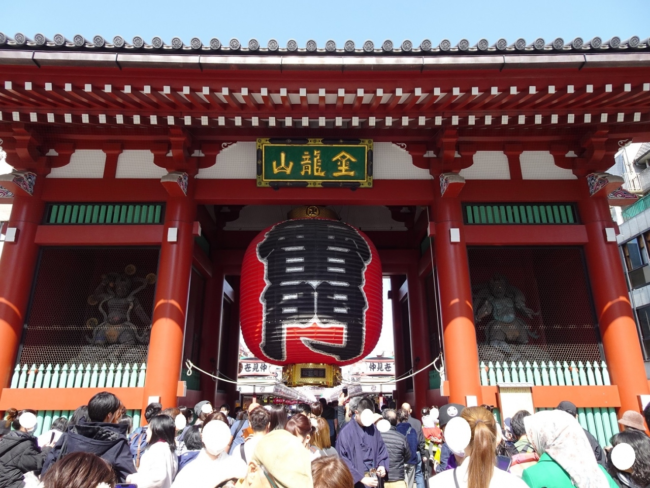 浅草の観光スポットと言えば雷門!。とても有名です。訪れた時は3月でしたが、観光客も戻ってきており、とても賑わっていました。記念写真を撮るにも大変でした。でも、「雷門」と書かれた大提灯は絶対に写真に収めたいと思ってしまいます!。そして、これを見ると、浅草に来たー!っという気持ちになります!!。