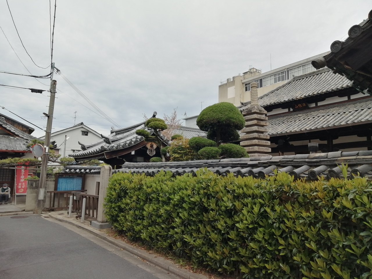 ならまち散策中におじゃましました。ちょっと入り組んだ住宅街の中にあるお寺です。残念ながら境内には立ち入れませんでしたが、立派な山門から本堂を拝見。小ぶりで簡素な印象を受けますが建立は1686年(貞亨3年)という歴史ある建物です。日蓮宗の基本的な型に則っており、寺社の多い奈良県下でも珍しく希少な本堂のようです。