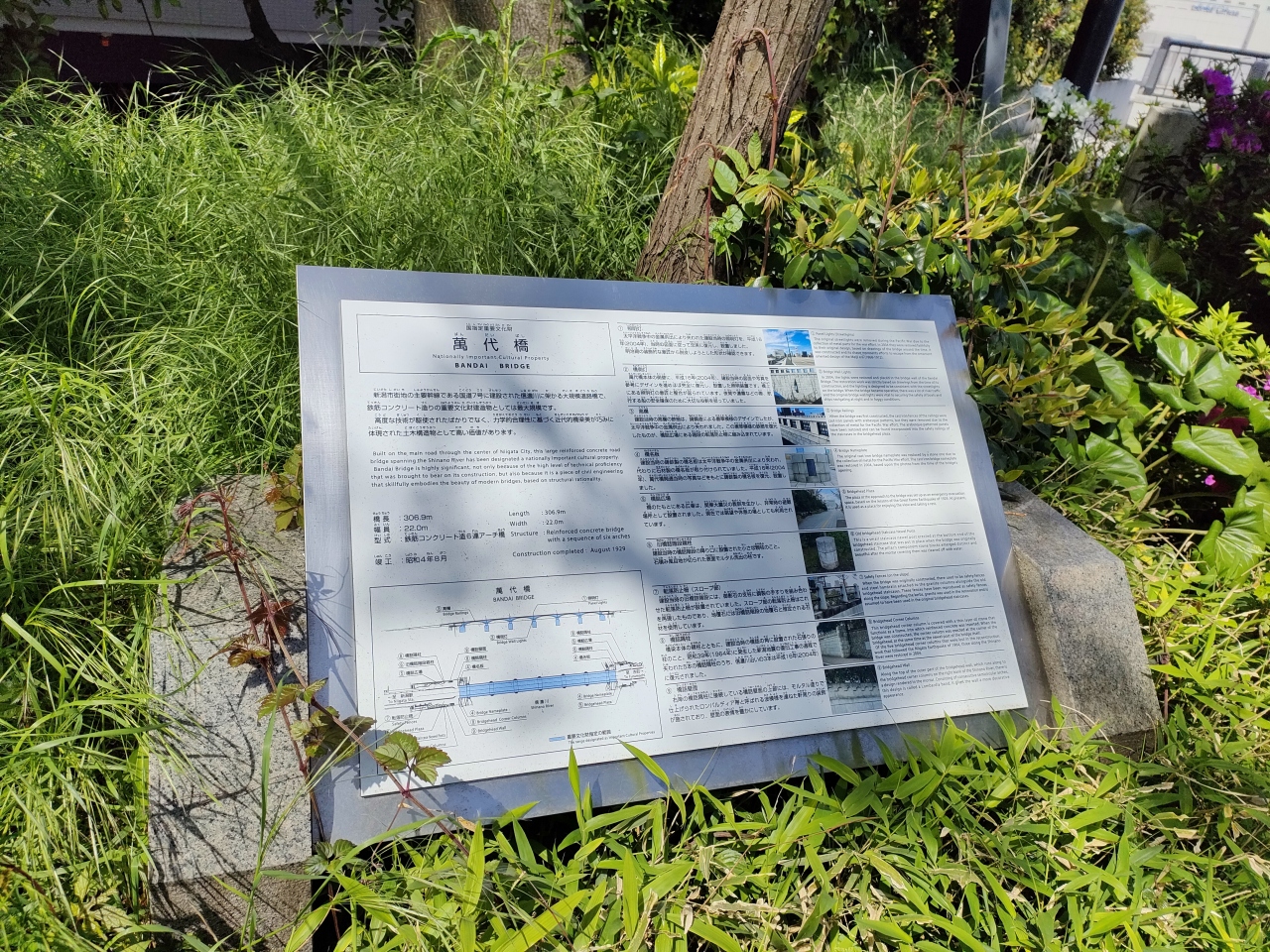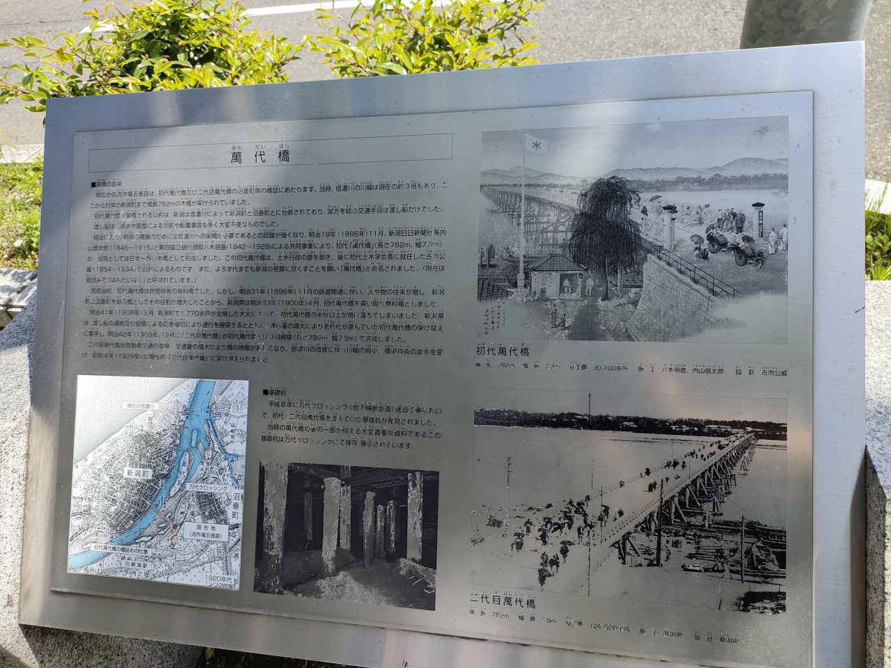 新潟駅方面から訪れましたが、橋のたもとに解説板・解説プレートが設置されています。