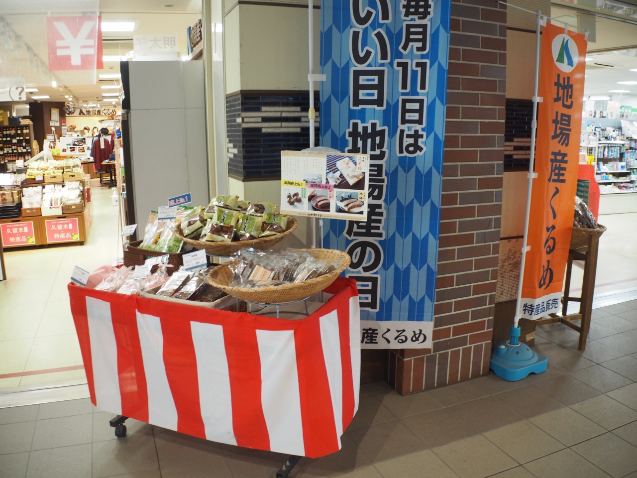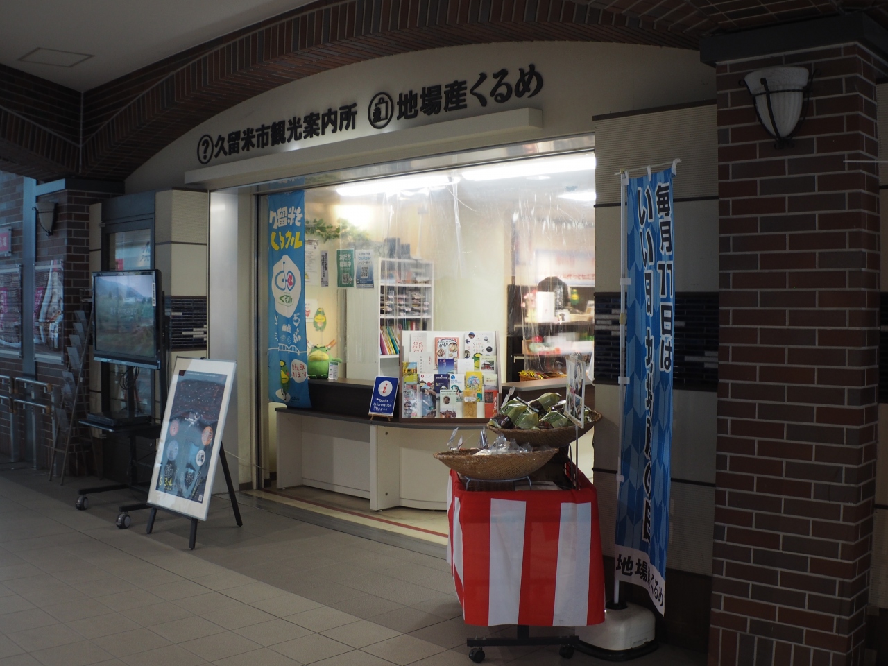 JR久留米駅の改札を出たすぐの場所の駅のコンコースに観光案内所はあります。パンフレットや観光用マップをいただいて街歩きを始めました。観光案内所の隣は地場産品などを販売する売店になっていました。JR久留米駅周辺にも水天宮などのいくつかの観光スポットがあり、歩いて回れる場所もありました。