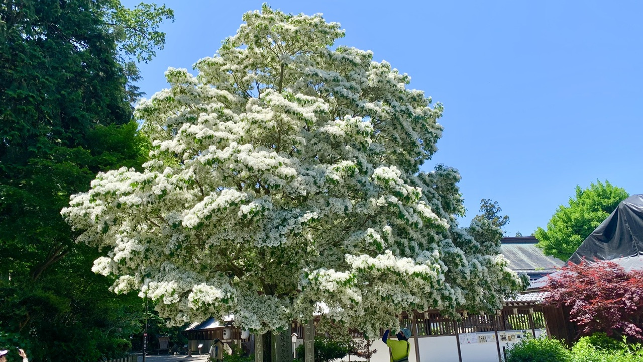 5月は満開の、なんじゃもんじゃの木が見どころです!