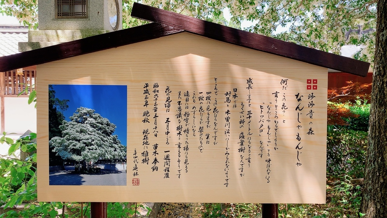 この神社で、何といっても目を引くのが、5月中旬に満開を迎える、なんじゃもんじゃの木。 楼門の前のシンボル樹は、本当に立派で美しいです! それ以外にも、境内には合計10本のなんじゃもんじゃの木が植えられてるとのことでしたが、私はシンボル樹以外は気付かなかったです…。 お天気の良い時に見に行くことが出来て良かった!