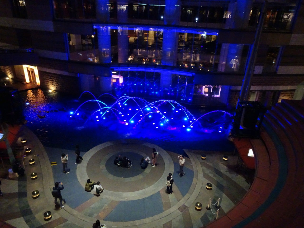 プロジェクションマッピングと噴水のショーがあると聞き行きました。ビルとビルの間でショーがあります。時間によって音楽や内容が変わるようで、私の時はエヴァンゲリオンでしたがとても盛り上がっていました。風向きによって水がかかることもあるようです。色々な場所から見れます。
