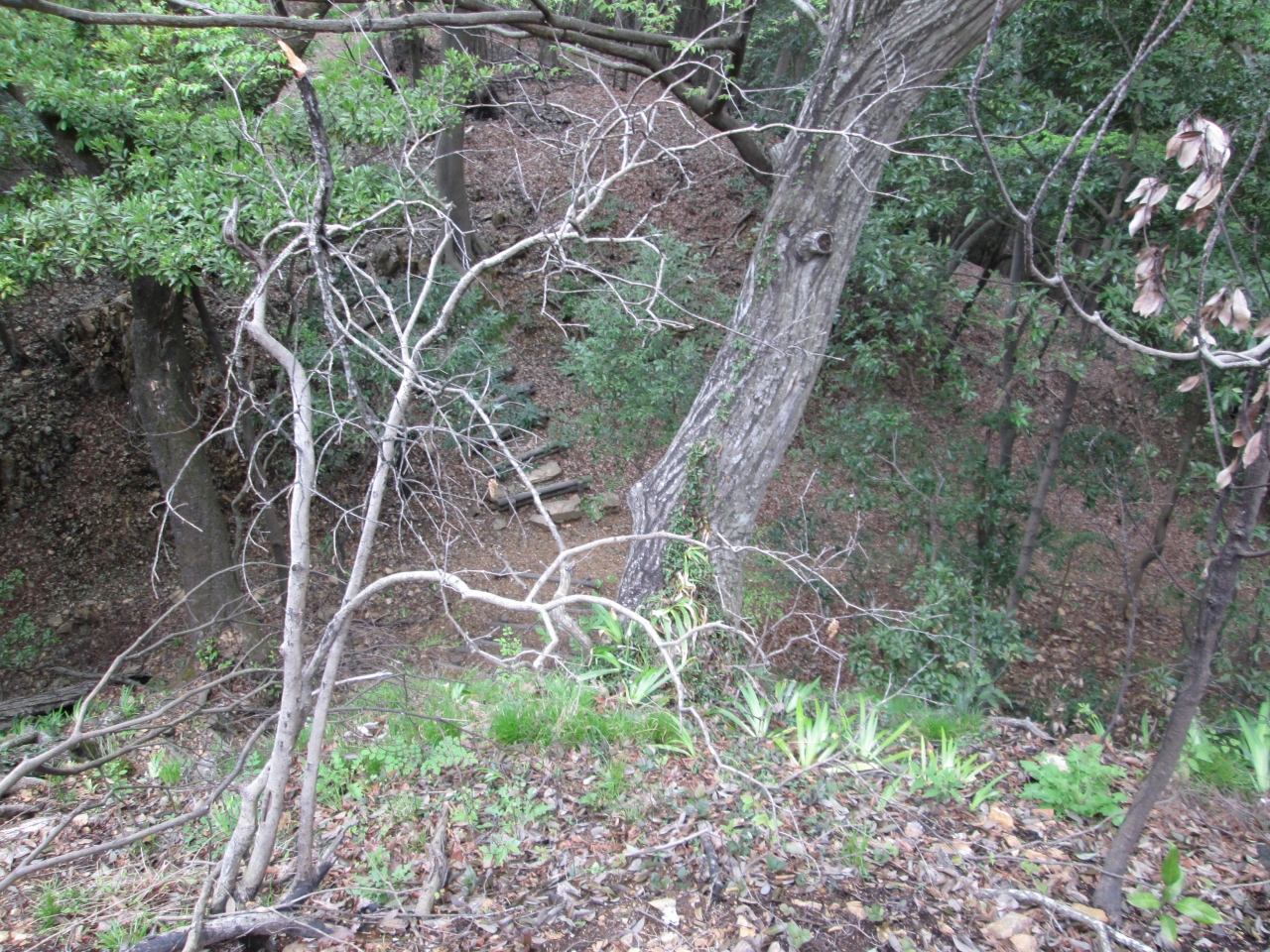織姫、織姫公園、両崖山の岩場登りを経由して、新設されたウッドデッキのある展望台に着きました。展望台とその先、東屋が建つ郭の間に堀切が、更に進むと鳥居前(石段下)に堀切があり、石段を登ると休憩舎や足利城址碑の建つ二の郭(または腰曲輪) があります。更に石段を登ると本郭跡(両崖山山頂、御嶽神社本社)に到着します。本郭北にかなり深い堀切が見られます。曲輪跡と堀切以外遺構は無いようです(石垣は分かりませんでした)。5点満点で1.5点(私見)位です。廃城は十六世紀、足利県立自然公園になっているので、開発もされていないにも関わらず遺構が少ないのに驚きました