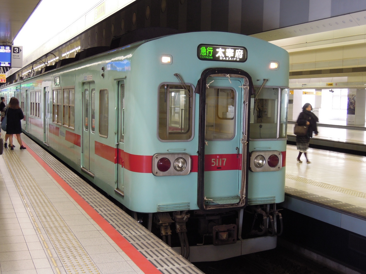 福岡市・天神から大牟田市までを結ぶ西鉄のドル箱路線だ。福岡と大牟田の間の久留米、太宰府、春日など各都市を結んでいるだけに乗降客は多い。この日は天神と太宰府までの往復を乗ったが、通勤通学観光客とさまざまな客層が乗っているのが印象的だった。
