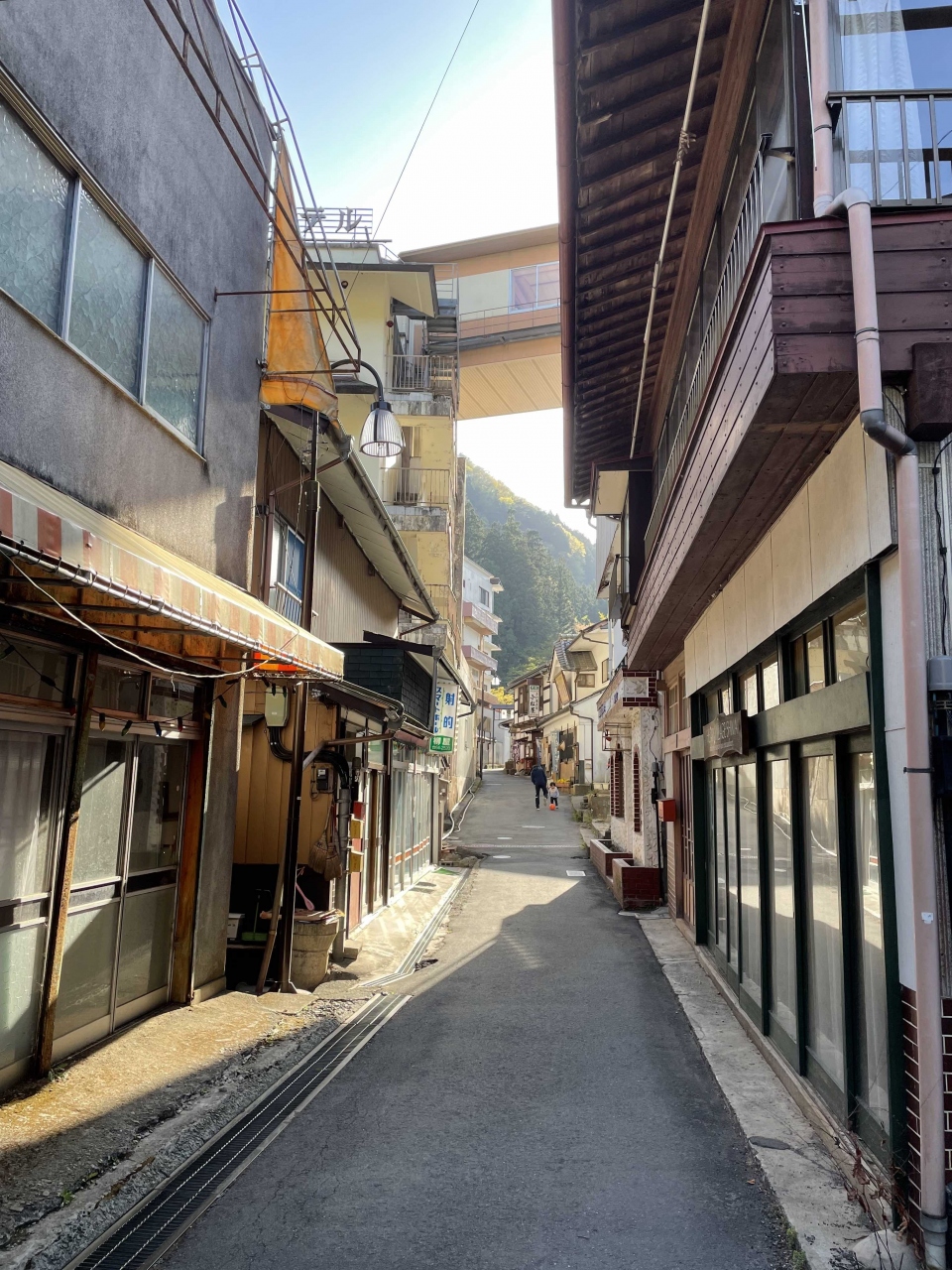 温泉街は3つのエリアに分かれていて、奥に行けば行くほど旅館の価格も安くなるがアクセスは悪くなる。
