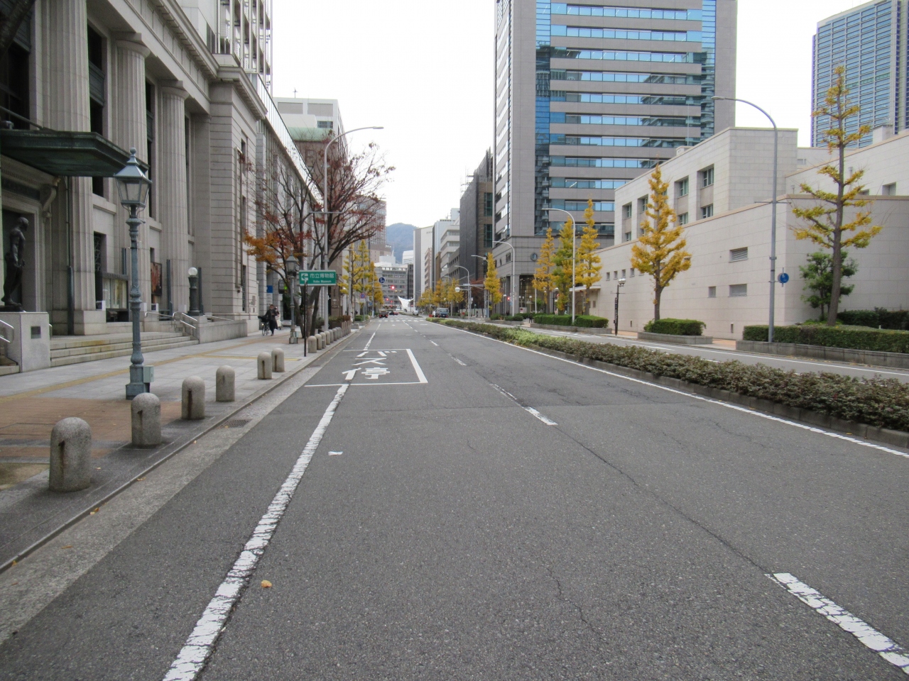 京町筋には多くのオフィスビルが並んでいて、日本銀行神戸支店や神戸市立博物館もありました。
