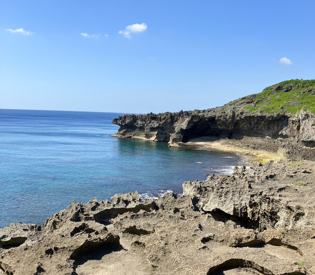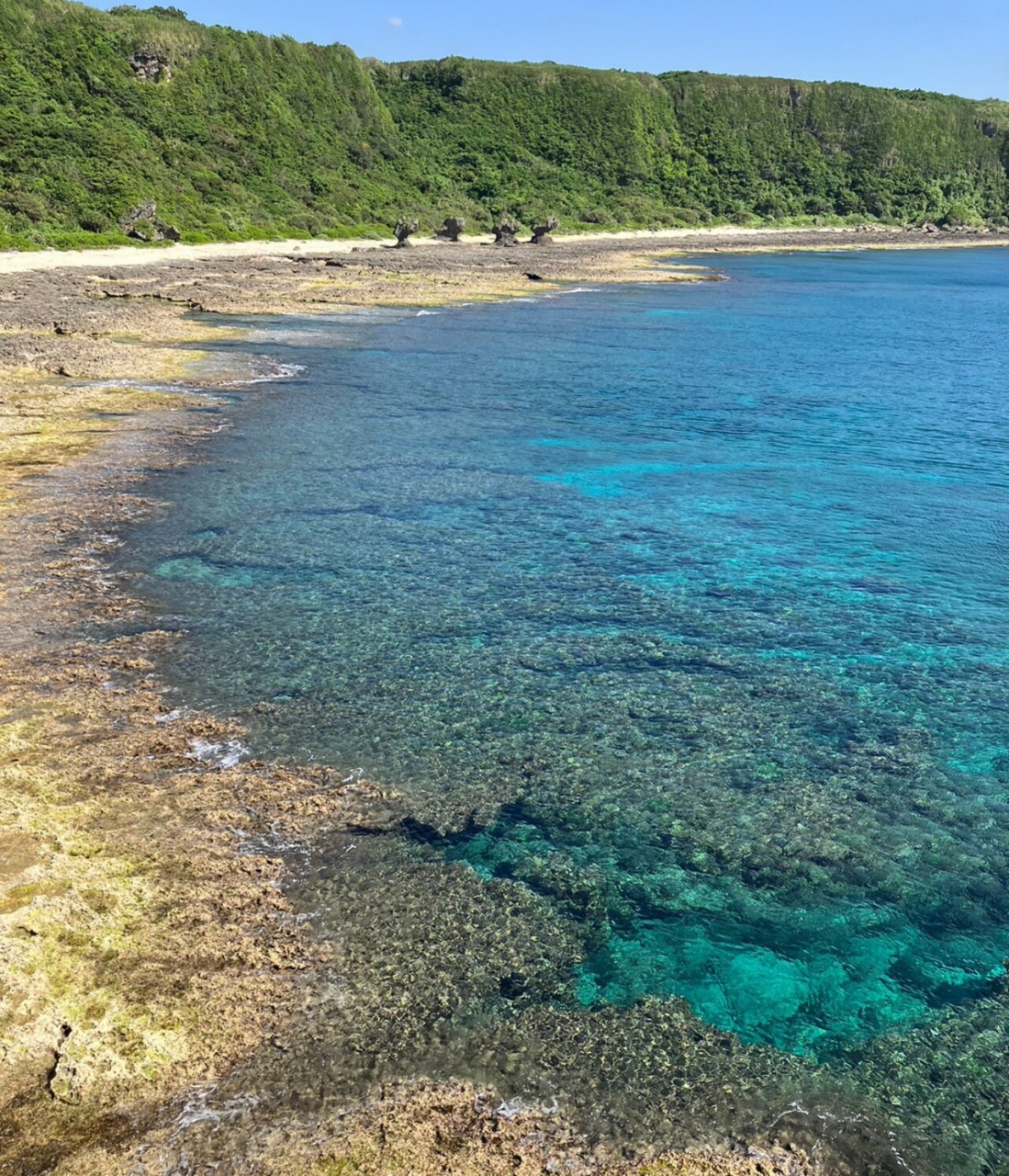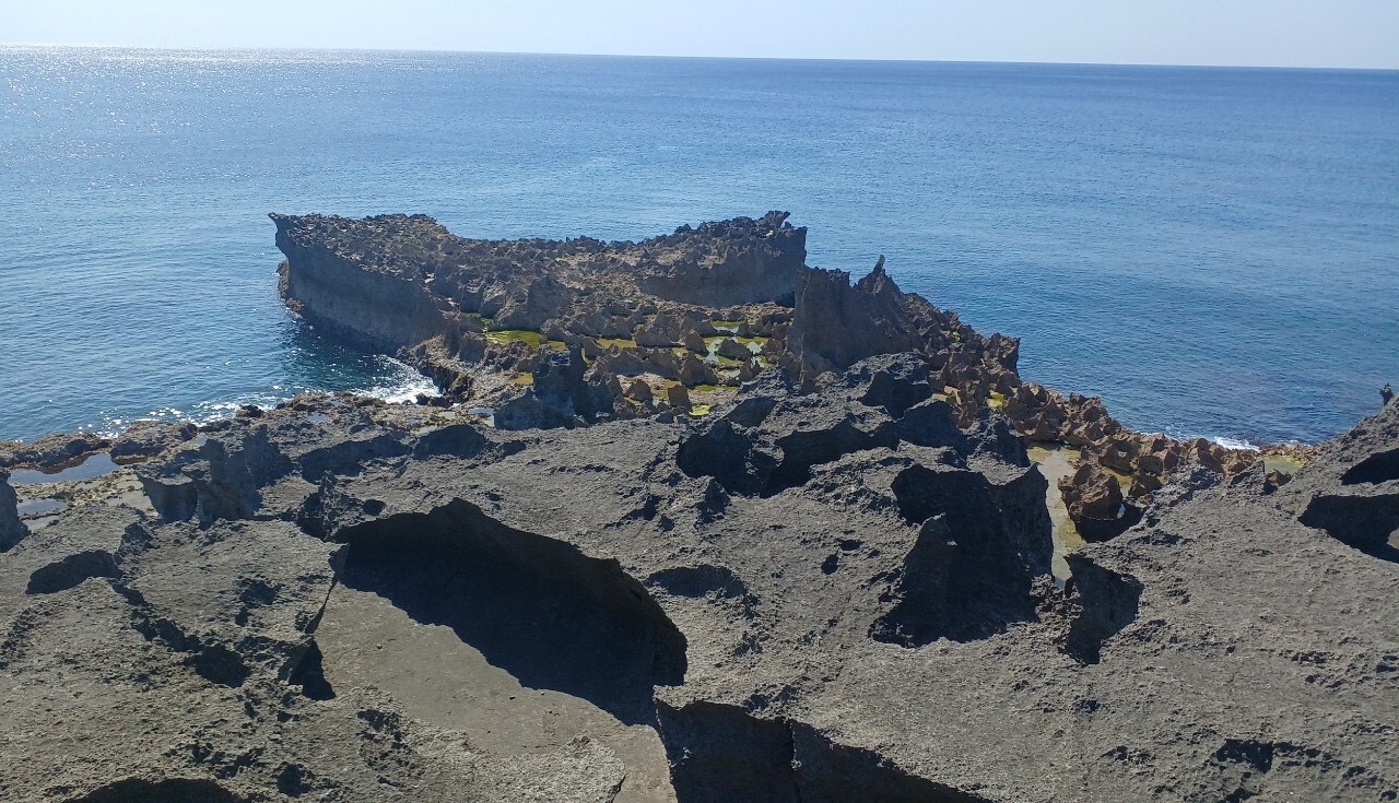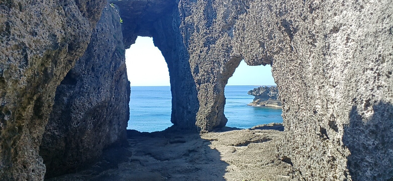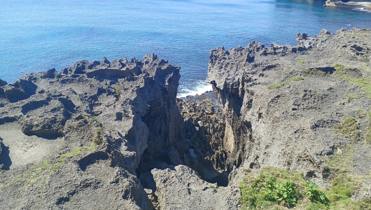 徳之島空港から車で約10分ほど南下すると到着。ゴツゴツした岩の上を歩くのでスニーカー必須。断崖絶壁だが柵はない。どこまで海側に近づくかは自己判断で。左の方に歩いていくと突き当たりから遠くに4つのキノコ型の奇岩も見えた。波風に侵食された岩の景勝地が好きな方はゼヒ訪れてほしい。のんびり滞在してもよさそう。