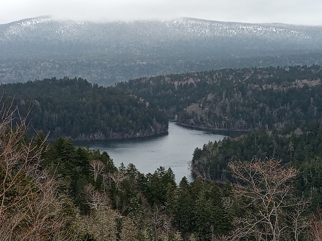 その阿寒湖側にある双湖台から、阿寒の深い森の中に見ることができる、北海道みたいな形の湖がペンケトーです。(もう一つ見えるのがパンケトー)