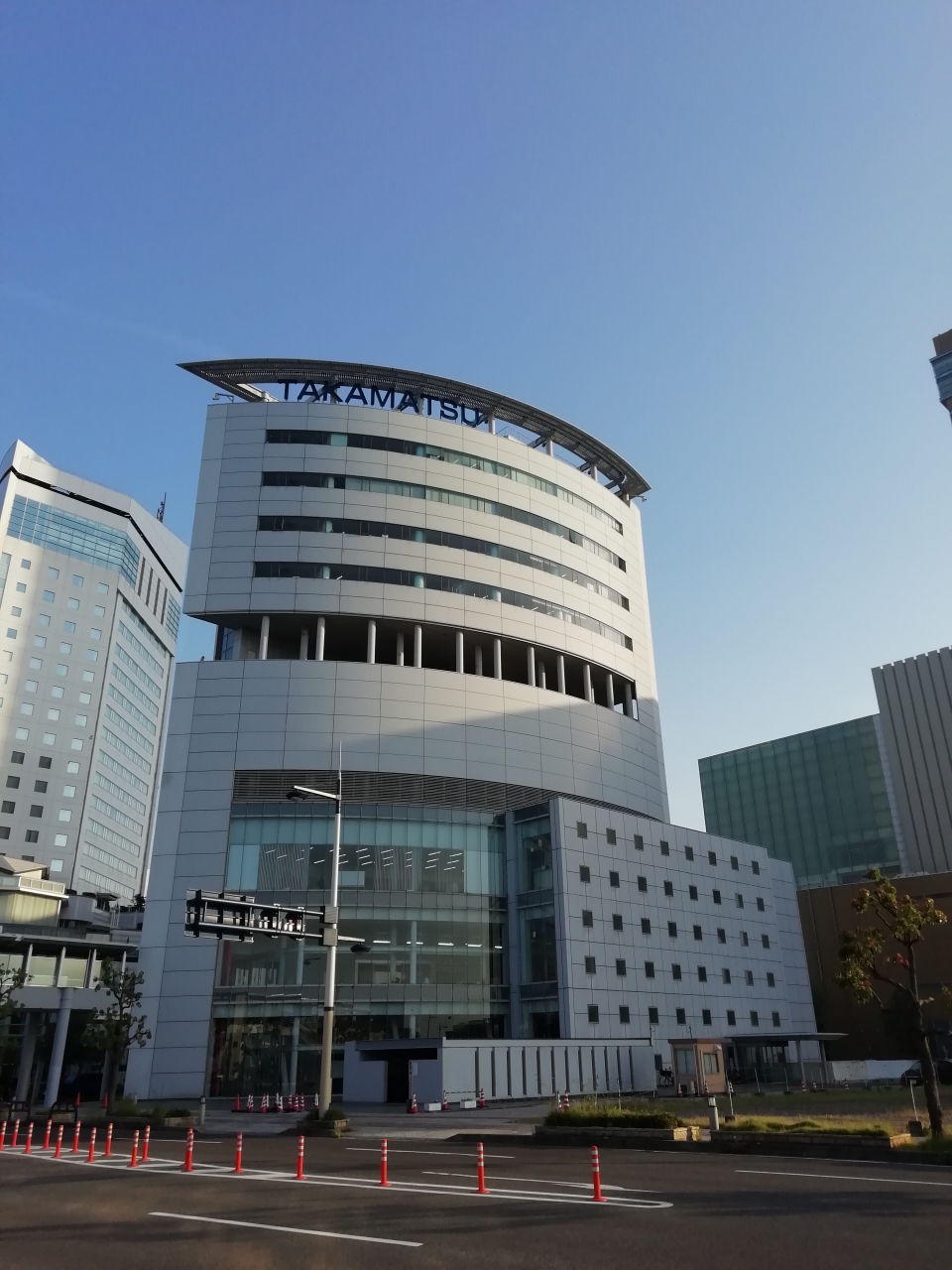 高さがあるターミナルビルなので、目立っています。JR高松駅からでもことでん高松築港駅からでも歩いて行けます。こちらはフェリーのためのビルなので、待合所やカフェがありました。ただ、チケット売り場はここにはなく、港のほうに行く必要があります。