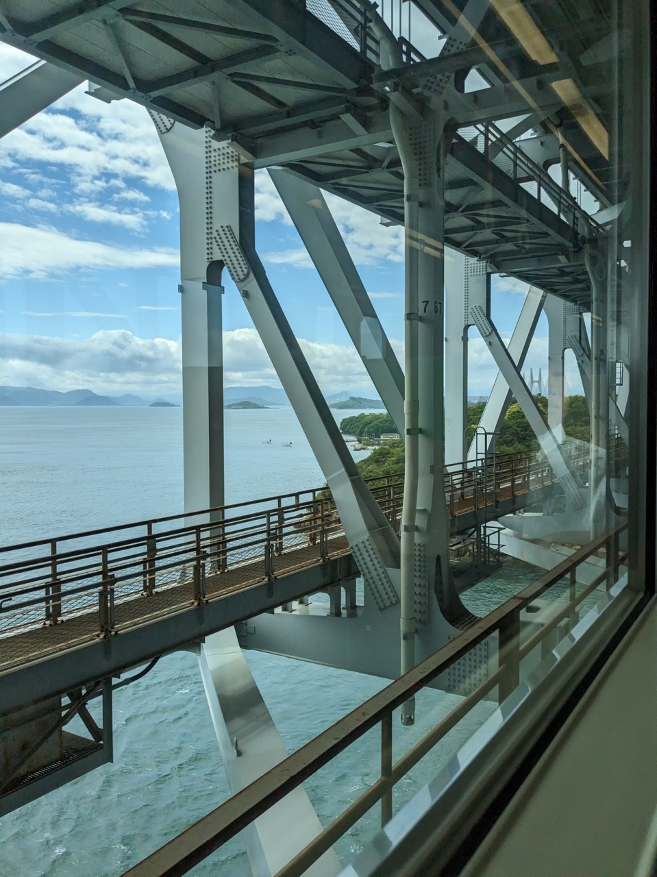 岡山県(倉敷市)と香川県(坂出市)を結ぶ瀬戸内海に架かる大橋です。10の橋を総称して「瀬戸大橋」と呼ぶようです。車や電車で渡ることができますが、今回は、電車(マリンライナー)で渡りました。車窓から眺めることができる瀬戸内海の雄大な景色は絶景で堪能しました。
