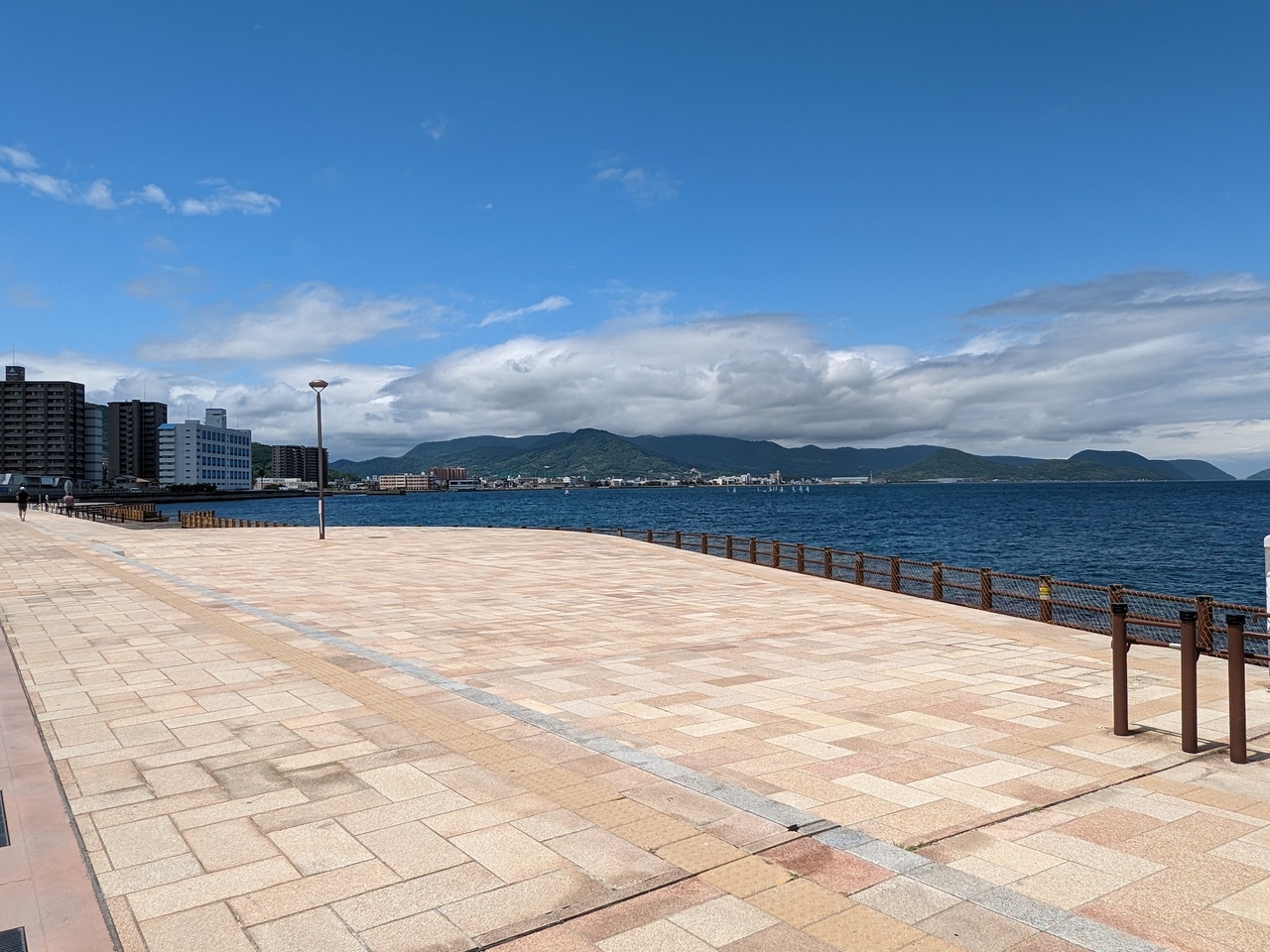 JR高松駅から徒歩数分、高松港周辺の一帯を「サンポート高松」と言うようです。一帯には、高松シンボルタワーや旅客ターミナルビルなどがあり、散策コースとして整備された防波堤からは瀬戸内海に浮かぶ島々を眺めたりできるので観光スポットとしてもオススメです。