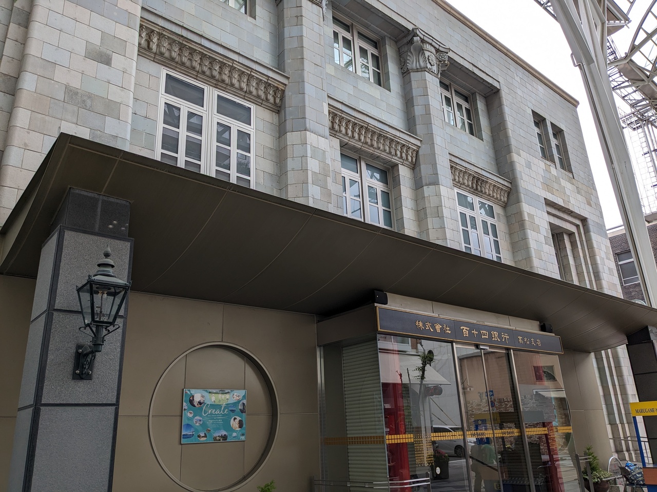 高松丸亀町商店街のドーム広場から直ぐのところに「旧百四銀行本店」はありました。銀行として今も利用されている建物は、重厚感があって見応えがありました。高松市内の中心地にいながら歴史ロマンを感じることができる建物でした。