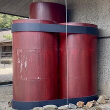 神門柱は、大きなパワーを持つ出雲大社の古代出雲大社の御用木だそうで、産地は出雲市佐田町にある吉栗山。かつて出雲大社造営の際に木材を切り出した場所で、その木材を朱塗りの三本の御用木として、以前は神門通りにおかれていたそうですが現在は、出雲大社内の神祜殿の前に置かれているそうです。