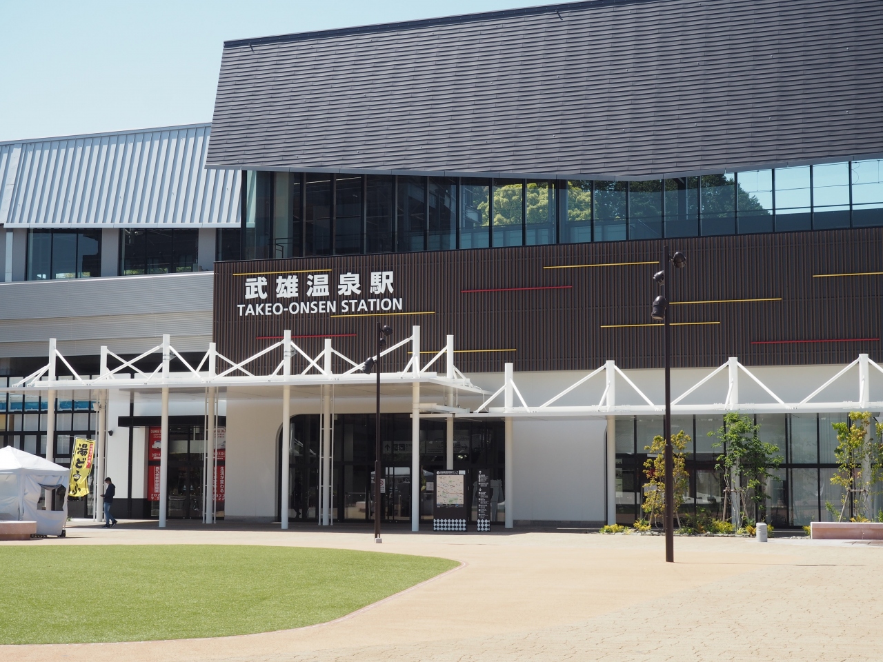 武雄温泉駅は西九州新幹線開業に伴いきれいな立派駅なっています。駅舎内には観光案内所、売店、土産物店、カフェなどがあります。駅の北口からは武雄温泉街まで歩いて10分ほど、南口からは武雄神社、武雄市市立図書館まで歩いて15分ほどです。途中下車して短時間の観光も可能です。