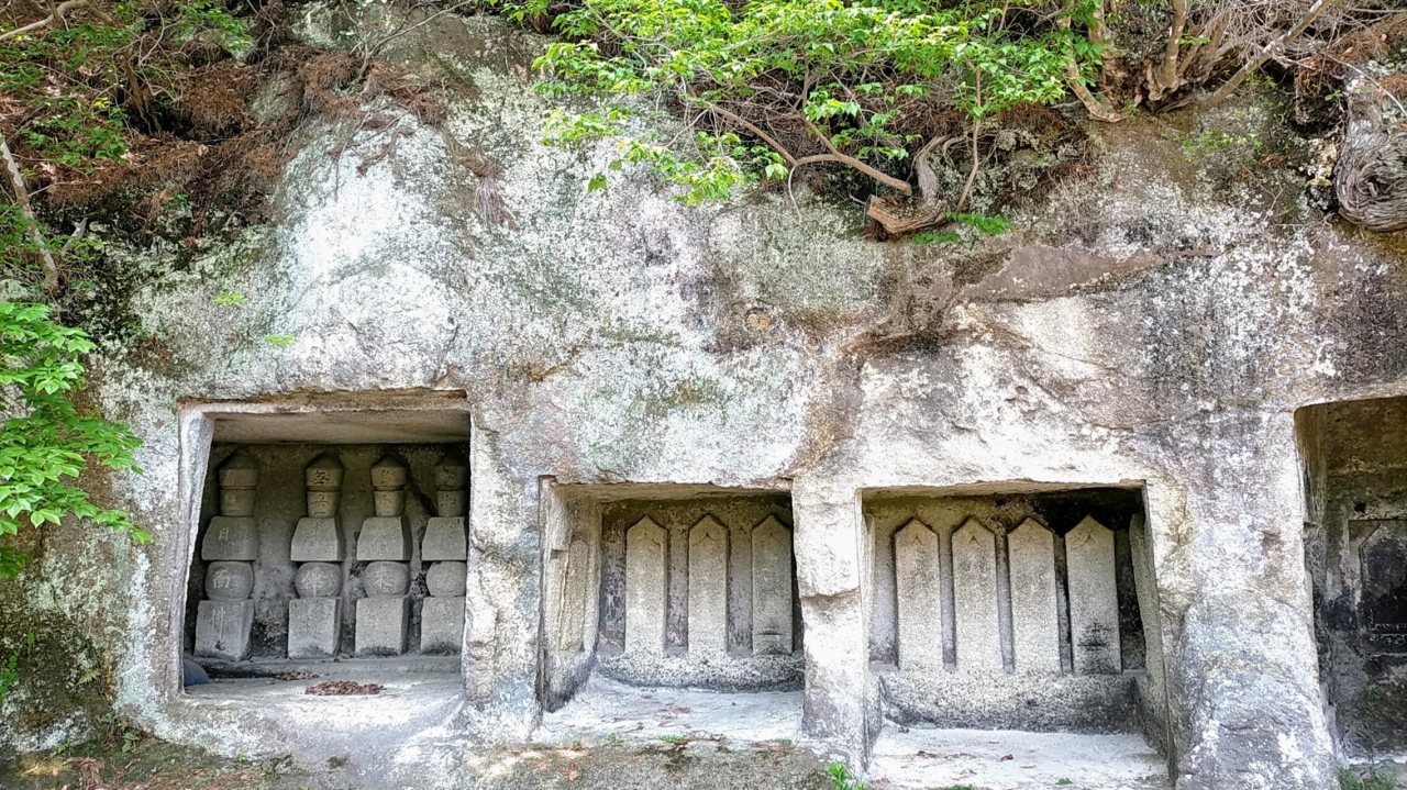 あと、島のあちらこちらの岩窟に卒塔婆を彫りつけた跡がいくつも残る壁が見受けられました。
