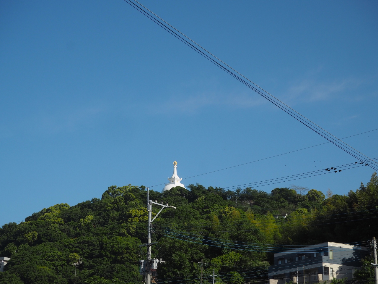 花岡山は熊本駅の新幹線口を出て右側へと10分ほど歩くと登り口があります。標高は133メートルの山で山頂部までは道賂もありますが、歩いて登れます。山頂には1953年に世界平和を祈願して建てられた仏舎利塔があります。仏舎利塔は下からもよく見えます。