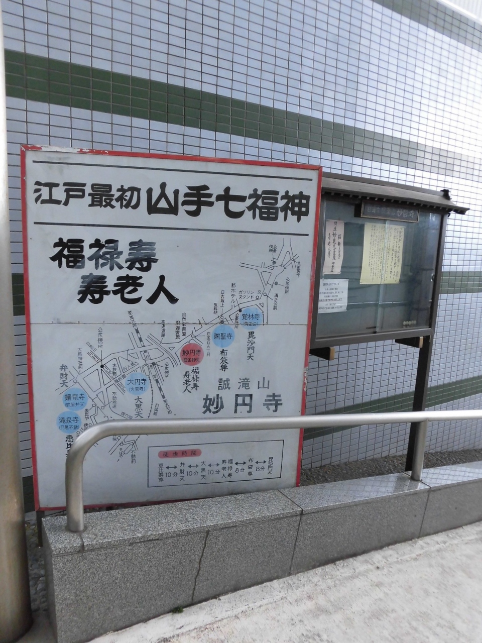 白金台3丁目付近を散策中に、お参りで立ち寄りました。境内にはいる手前に、鉄製の大きな枠組があるのと、江戸最初の山手七福神、福禄寿と寿老人と記載された看板が目印になると思います。日蓮宗のお寺で、本堂の周りは樹木も茂っていて、庫裡と本堂の間に渡り廊下があるのが珍しい造りだと思いました。