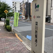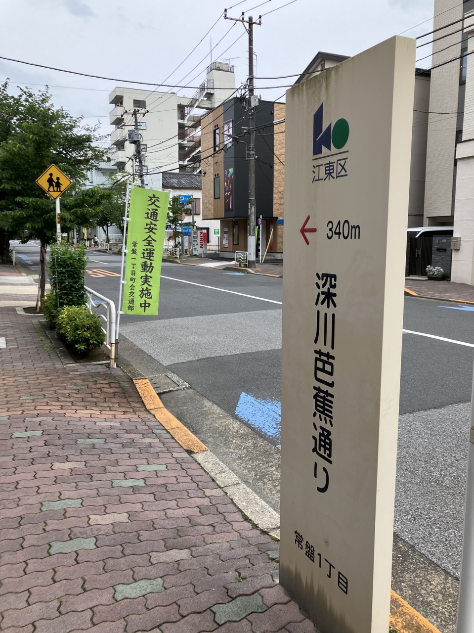都営地下鉄新宿線「森下駅」から徒歩で10分ほどです。「萬年橋北交差点(常磐一丁目)」から東へ340m、「清澄通り」までの通りです(その先は「高橋のらくろーど」)。西端には元禄期「新大橋」が隅田川(大川)に架かっており、芭蕉が住んだ草庵もあったようです。現在は「芭蕉記念館」など芭蕉ゆかりの地です。