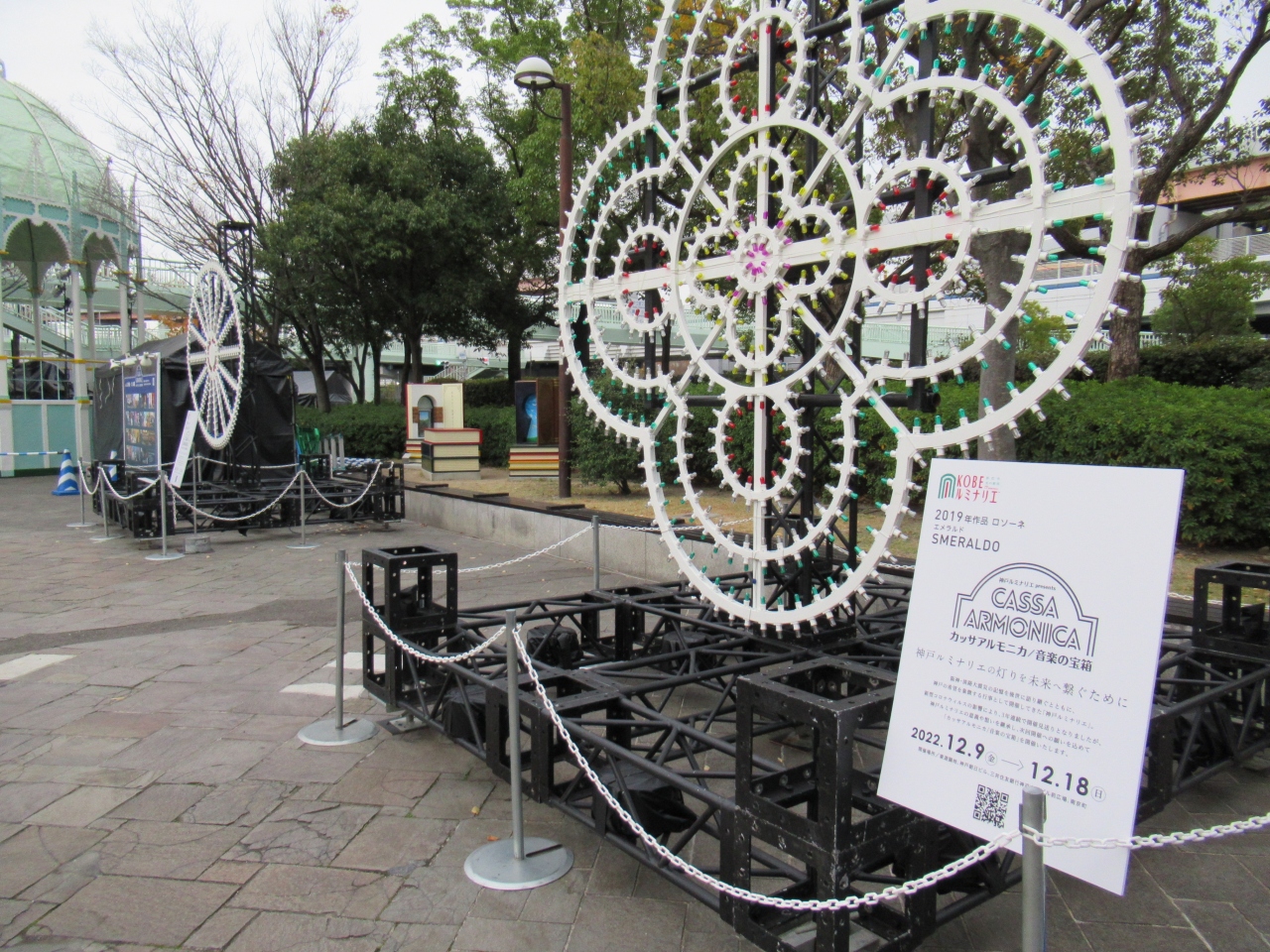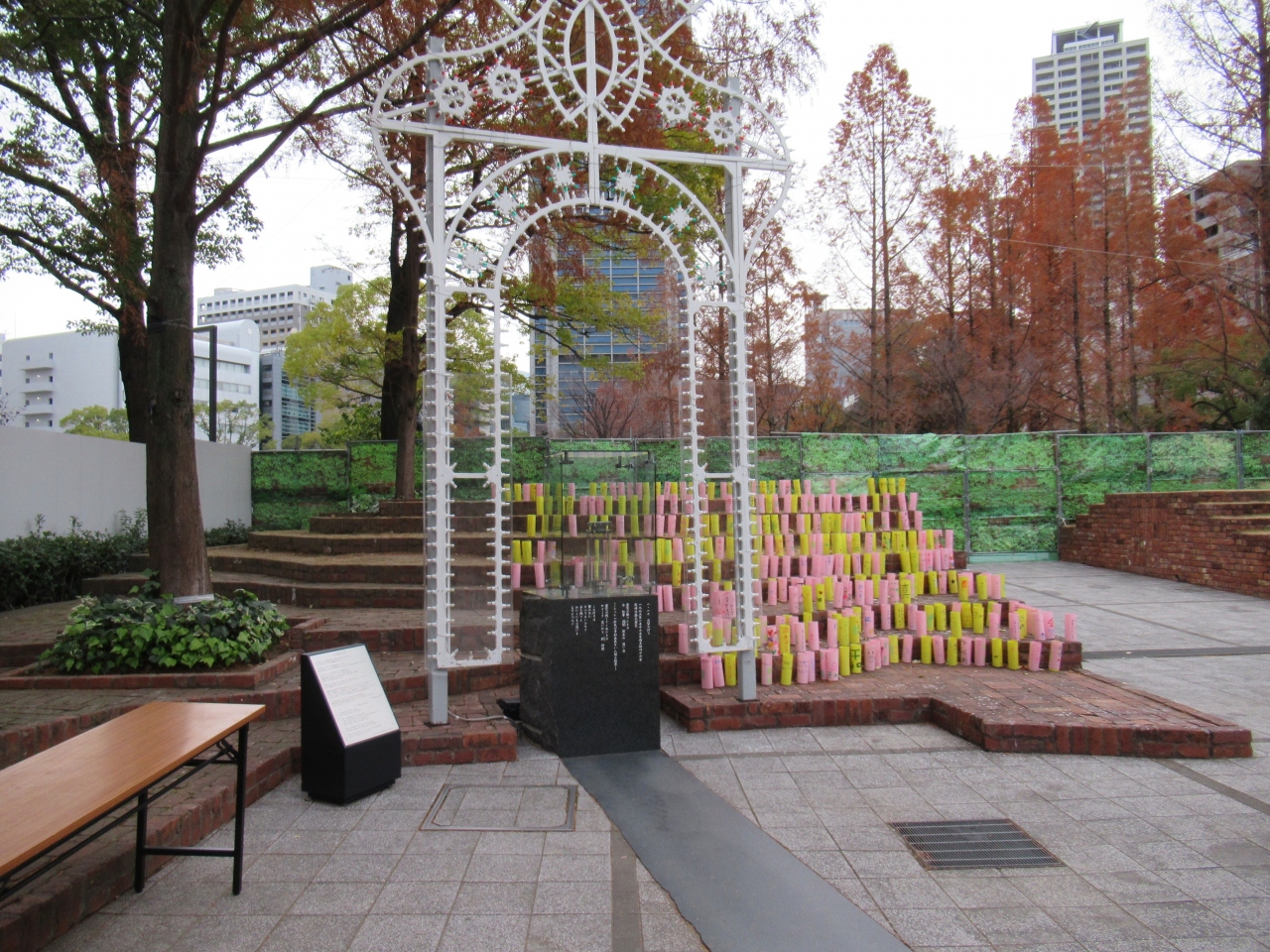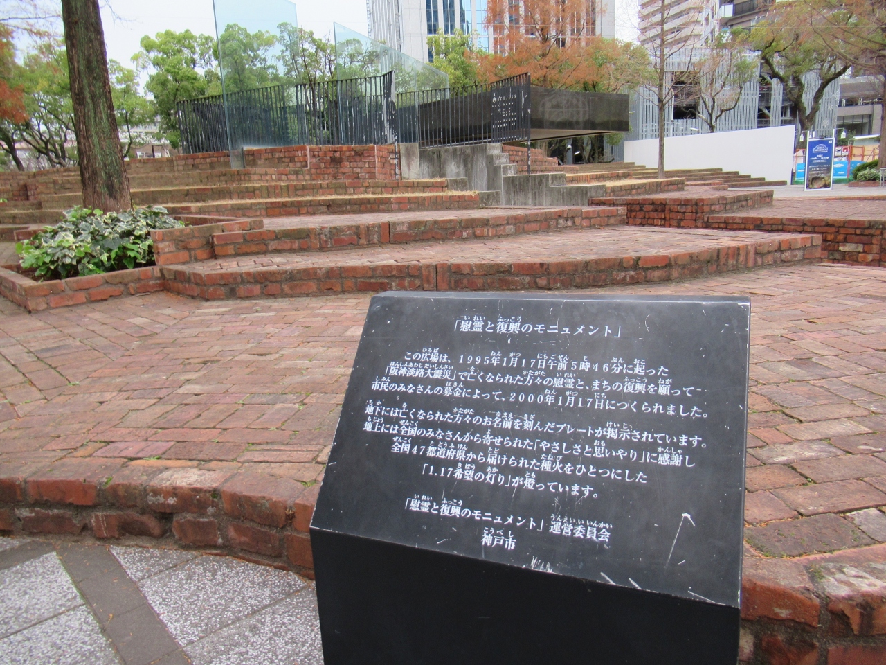 1995年の阪神淡路大震災以降は、ルミナリエや1.17希望の灯などの会場となっており、敷地内には犠牲者を追悼する慰霊モニュメントが設置されています。