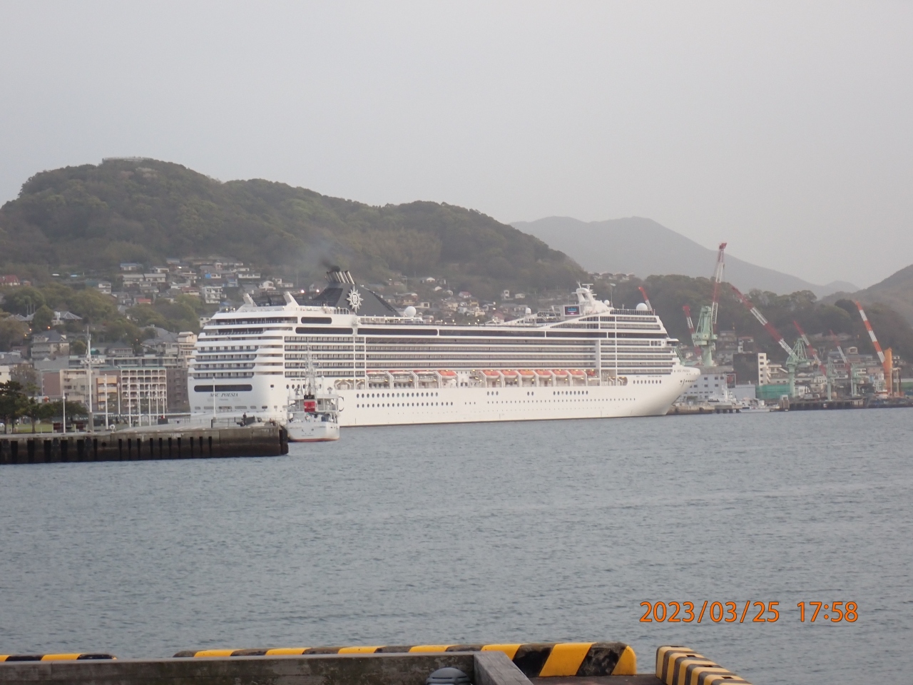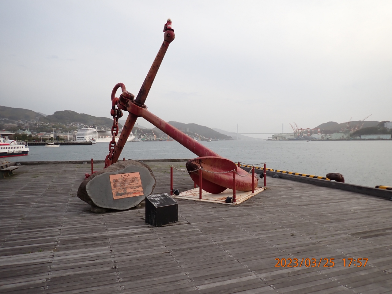 長崎市観光で立ち寄りました。長崎港ターミナルには、4社(九州商船、五島産業汽船、野母商船、やまさ海運)が運航してました。長崎港ターミナルビルに隣接したおくんち広場、巨大鐵錨があり、2つある桟橋の2号桟橋には観光丸が係留されてました。伊王島、高島、上五島、五島などへの便は1号桟橋から出ていました。