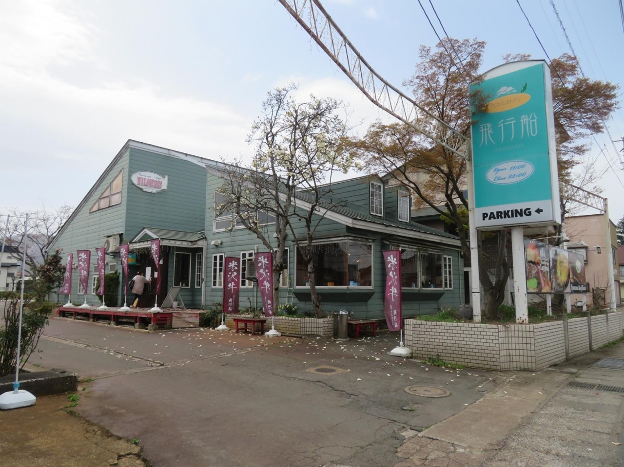 ≪米沢ステーキ&ビストロ 飛行船≫は、上杉神社から上杉家廟所へと向かう道筋にあるファミレス風のお店。