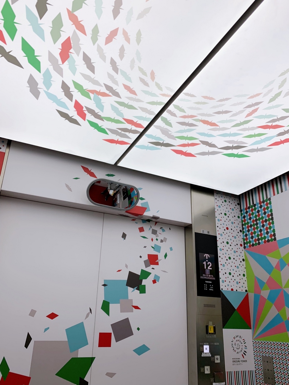 ワンフロア下のおりづる広場で、アーティストの綺麗なデザイン折り紙を選び、丁寧に鶴を折らせて頂いた。