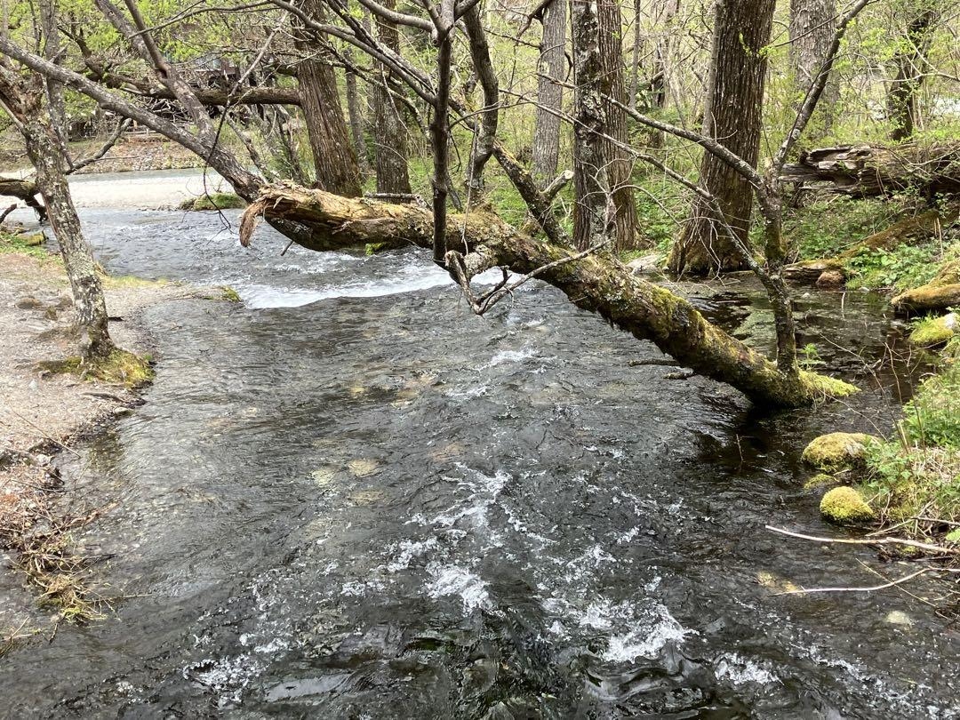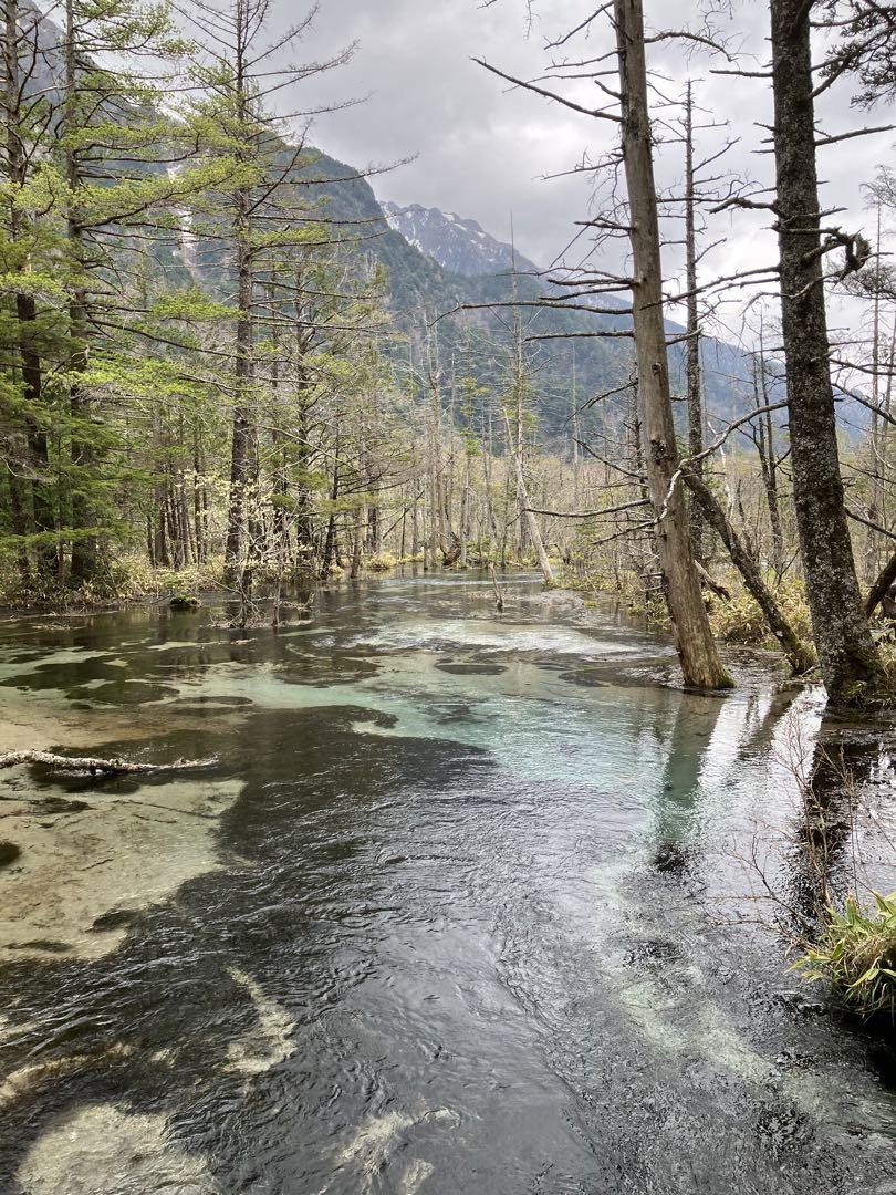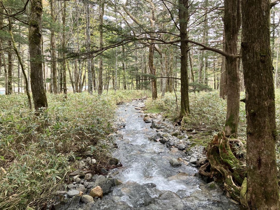 大正池から河童橋までより、景色は地味な感じですが、人が少ないです。