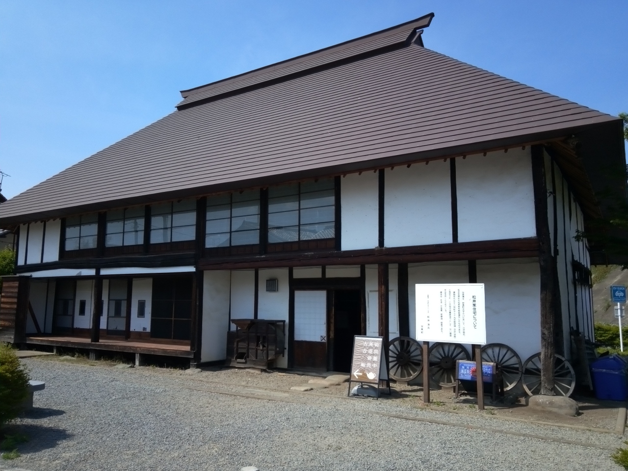 「道の駅甘楽」に広い無料の駐車場があります。その横に建っていて、外から見るだけでなく、入口も開いていて、無料で中も見られます。中では休憩も出来たり、古美術・古道具・骨董の販売もしているようです。天井が高く、梁も太くて、見応えがあります。