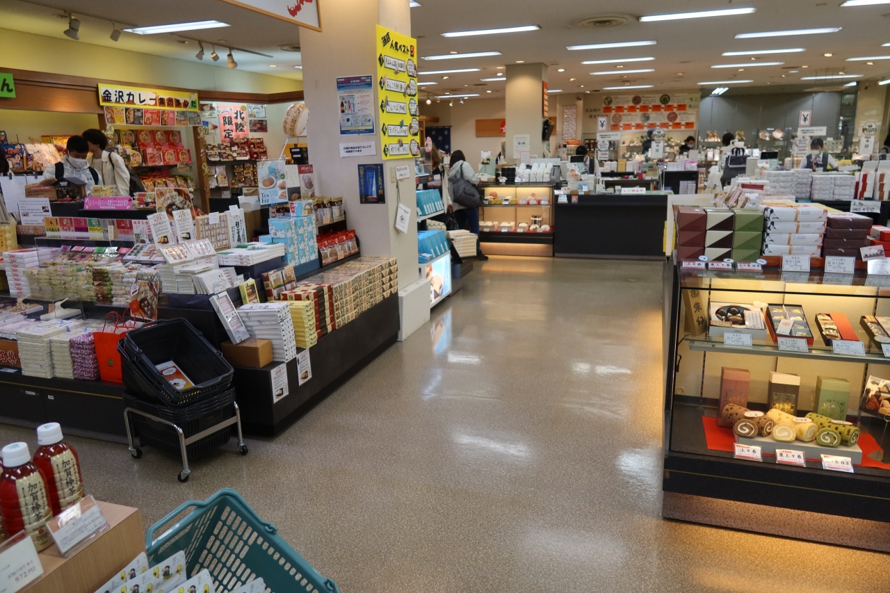 小松空港国内線2階の出発口入口前にあるお土産ショップがこまQショップ2F売店です。以前訪れたときは、もっと2階にお土産ショップがあったと記憶しているのですが、シャッターが閉まっていて開いていりのはここだけ。店内では一通りの北陸土産が買えますが、寂しい限りです。