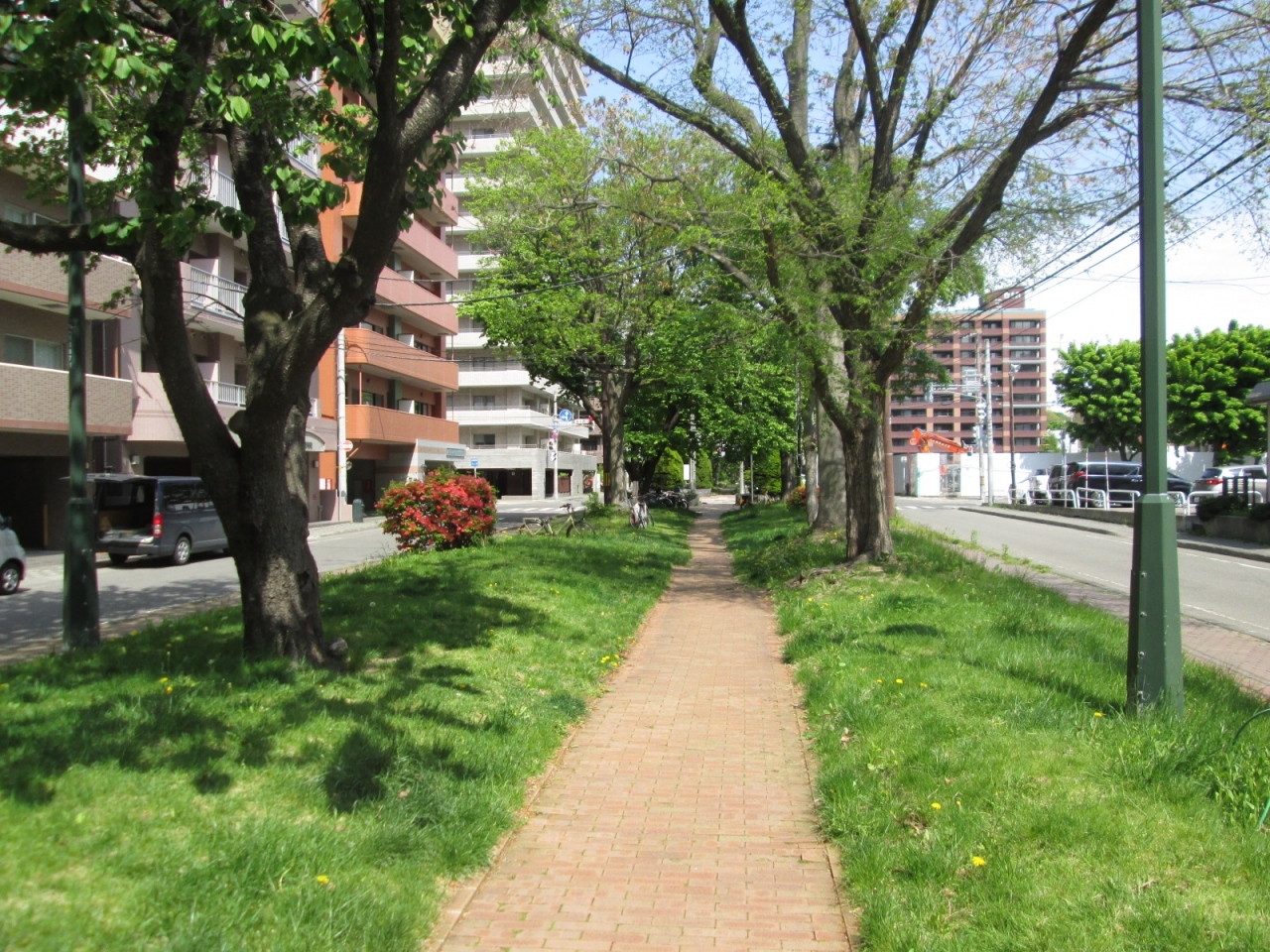 植物園の西側、北4条通り西12丁目から西18丁目までの区間を言い、大通公園のように両側が車道、中央が歩行者用と区分されています。
