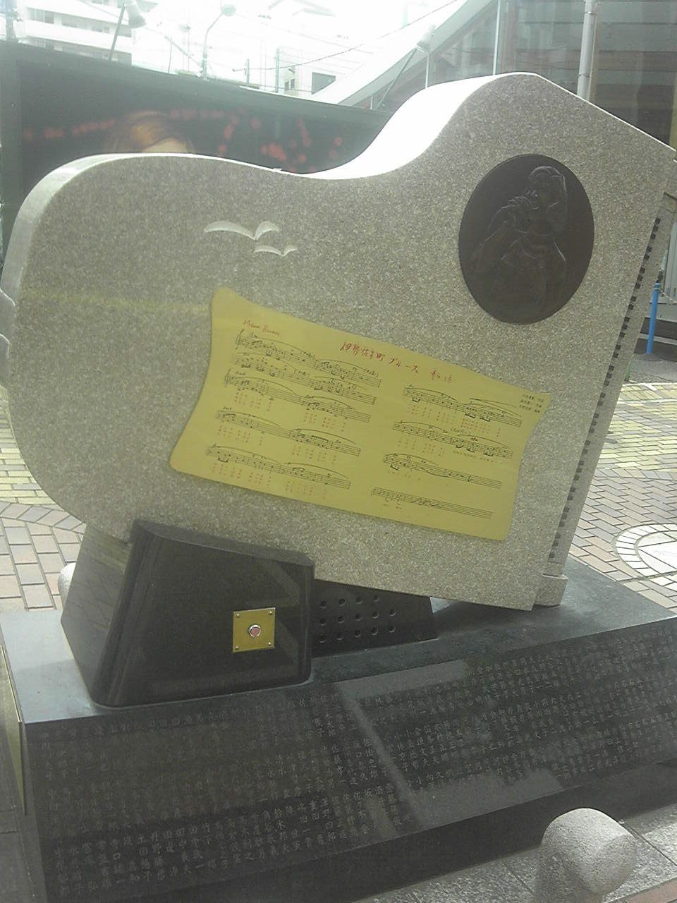 ピアノ型の歌碑が素敵。