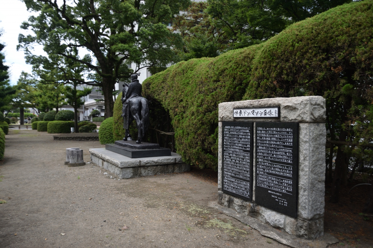 大分市内にある銅像です。伊東ドン マンショはあまり有名な人物ではありませんが、豊臣秀吉の時代に隠れキリシタンとして布教を行った人物です。大分市内にある遊歩公園の中にあります。説明書きとともに銅像が公園のすみに設置されています。