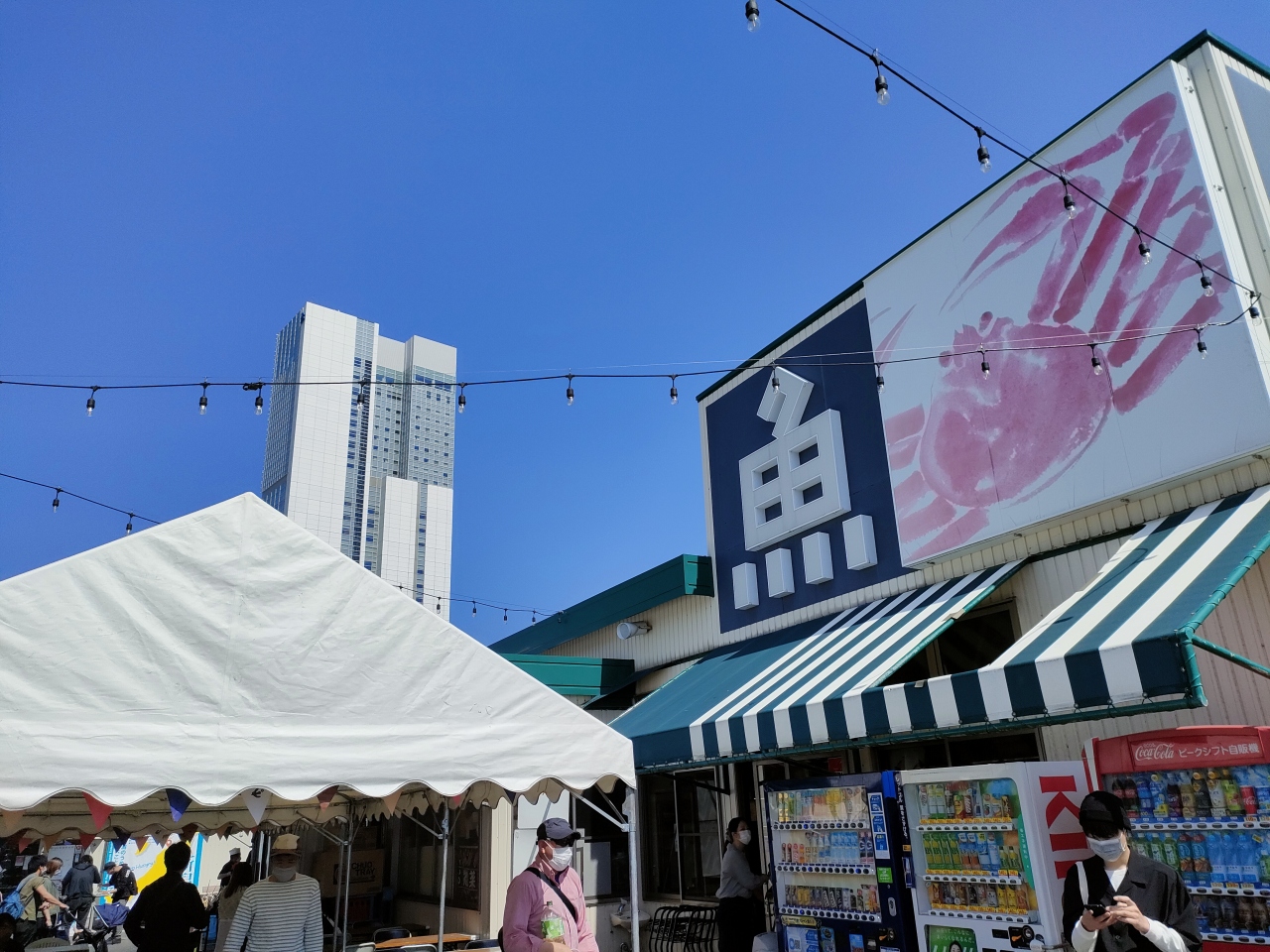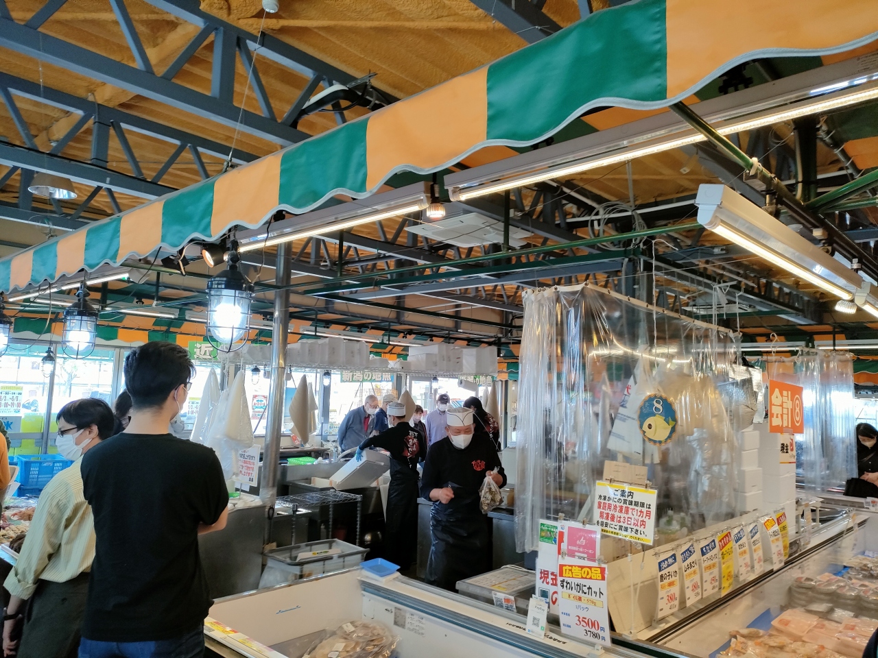 魚を売る市場のほかに肉や野菜、あげくに酒のコーナーもあり、ほか、海鮮の食堂やステーキのお店、カフェなど、食料品の買い出しとそのついでの食事で訪れることができます。