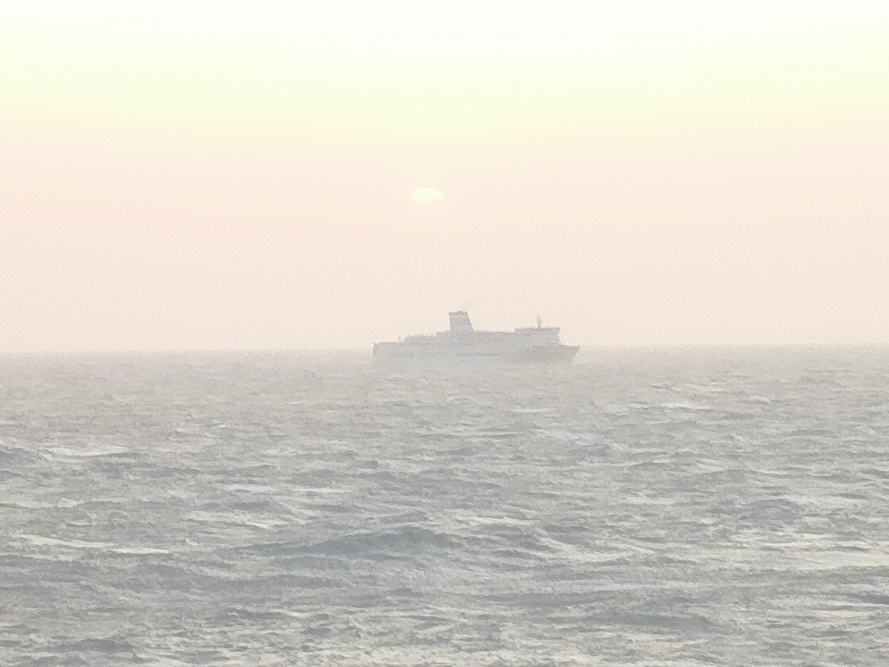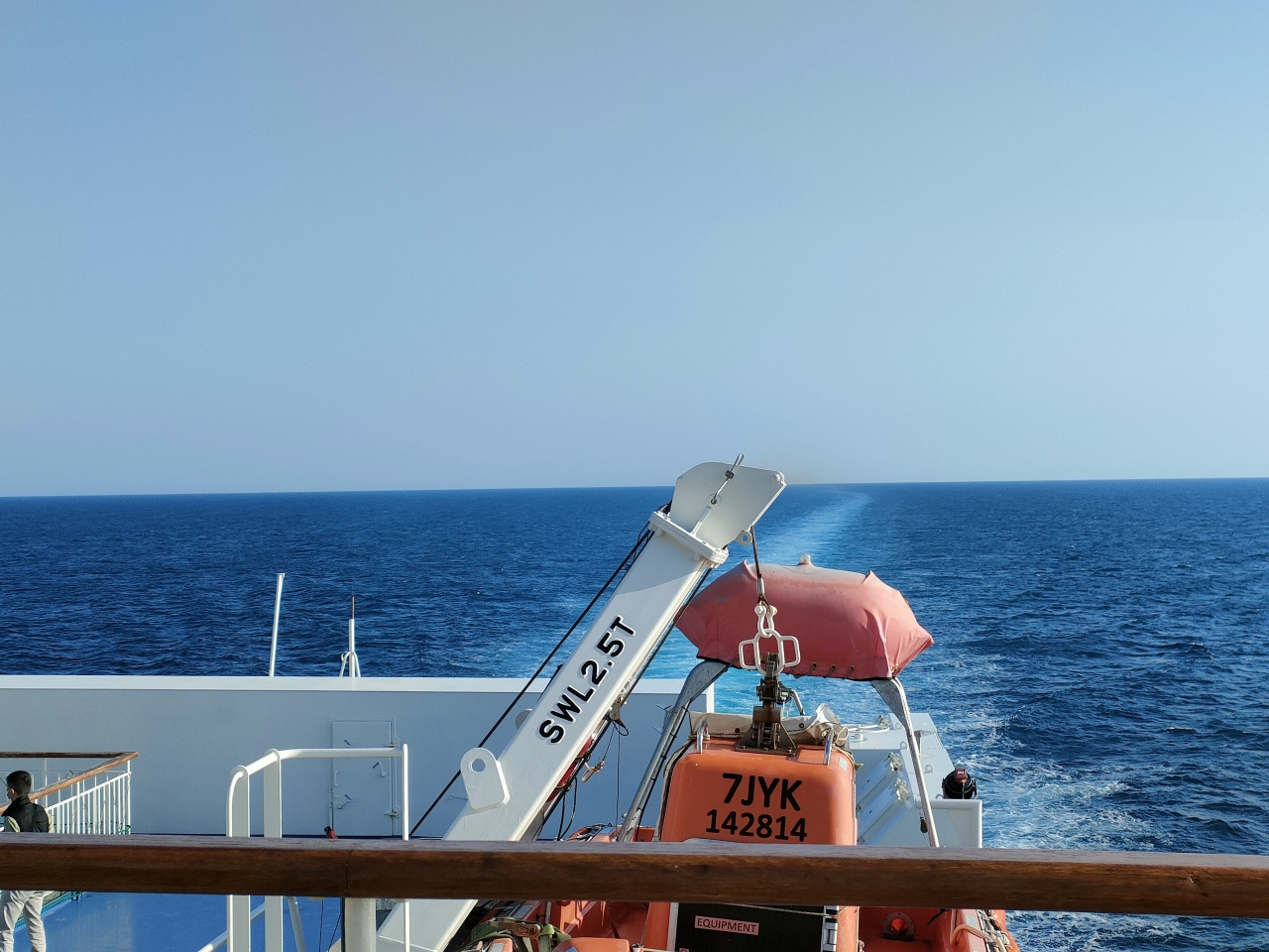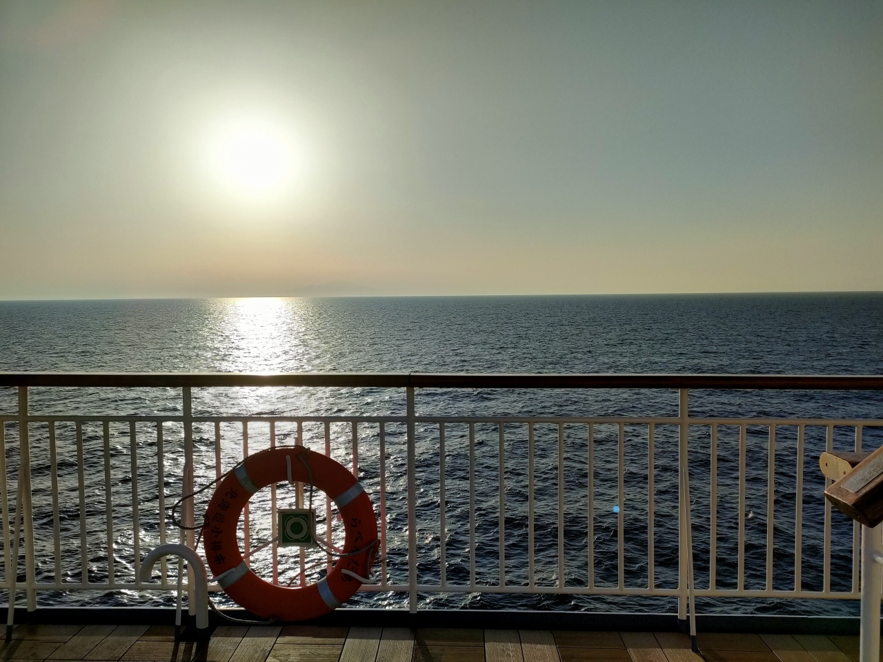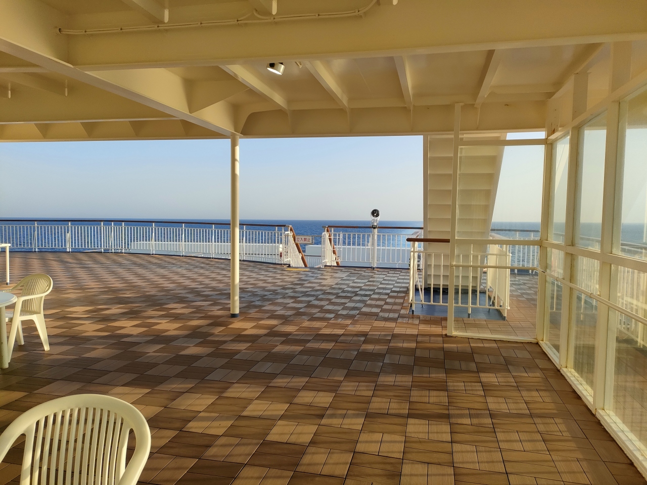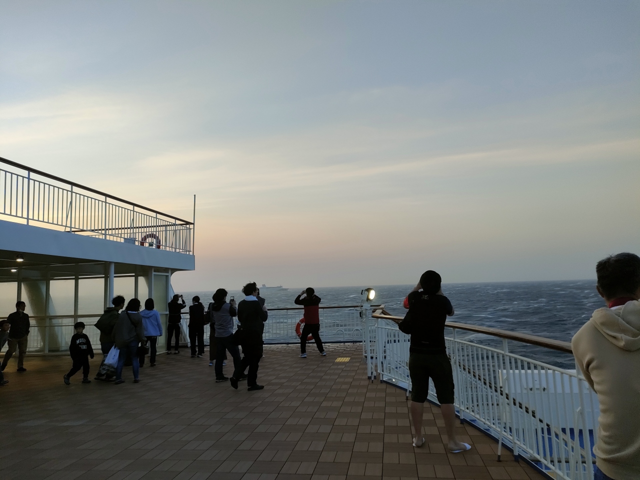 ちょうど積丹半島の神威岬の辺りでは、舞鶴→小樽の便との行き会いがあり、船内放送で案内があったため、小樽港出港以来、多くの乗客が甲板に出て、その様子を眺めていました。