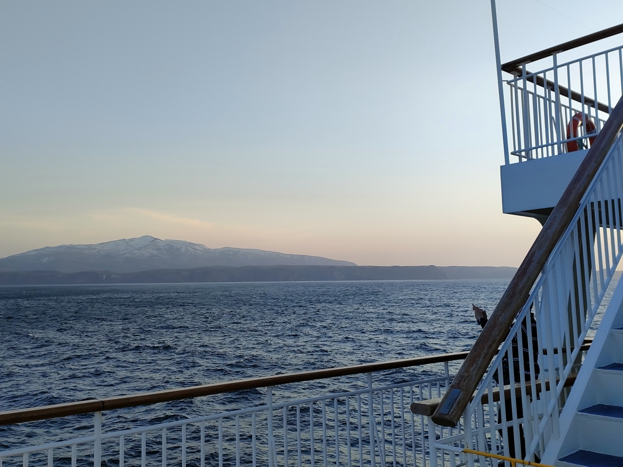 積丹半島沿岸を行く新日本海フェリーの甲板上からも眺められました。
