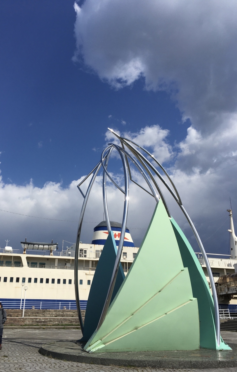 函館駅から2~3分歩いたところにふれあいイカ広場があり目の前には摩周丸が停泊しています。謎のオブジェがありましたがここは函館山を一望できる絶好の写真撮影スポットでした。人も全然いなくてゆっくり景色を見るにはイイかも。