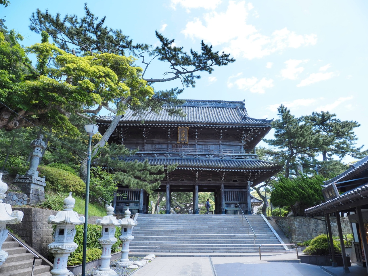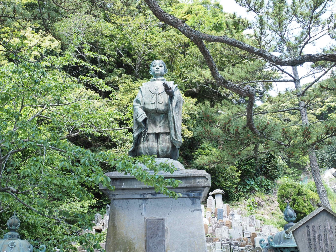 日蓮聖人の誕生し建立された誕生寺。。以前程の参拝客はいませんが、立派な山門は圧巻でした。境内には幼少期の日蓮聖人の銅像があります。目の前は鯛の浦で遊覧船も出ています。駐車場はなく600円の有料駐車場に停めました。