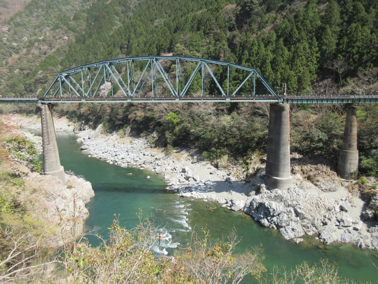 徳島県内では、四国最大の川、吉野川を何度か横切ります。特に、深い峡谷「大歩危・小歩危」を何度か横切ります。峡谷を渡る姿も見てみたいものです。