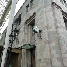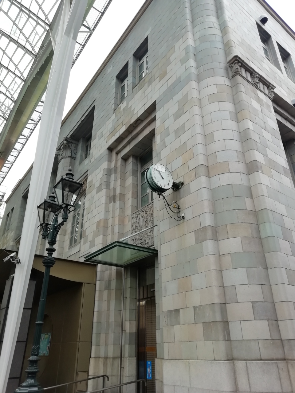 高松の丸亀町商店街を散歩していて、ドーム広場の近くに重厚な石造り風の建物を見つけました。百十四銀行の高松支店で、現在も利用している建物でした。商店街の中心のような場所で、なにか催事をする準備をしていました。町の歴史に寄り添っているように感じました。