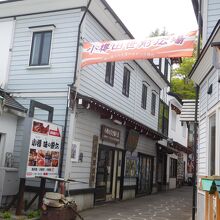 小樽観光のメイン通りとなる「堺町通り」の途中にあります。昭和レトロな雰囲気で、この一角だけちょっとしたテーマパークのような雰囲気になっていました。海外からの観光客が興味深そうに写真を撮ったりしていました。この空間だけ、タイムスリップしたような感じでした。地面には、ケンケンパで遊ぶような円が描かれていました。